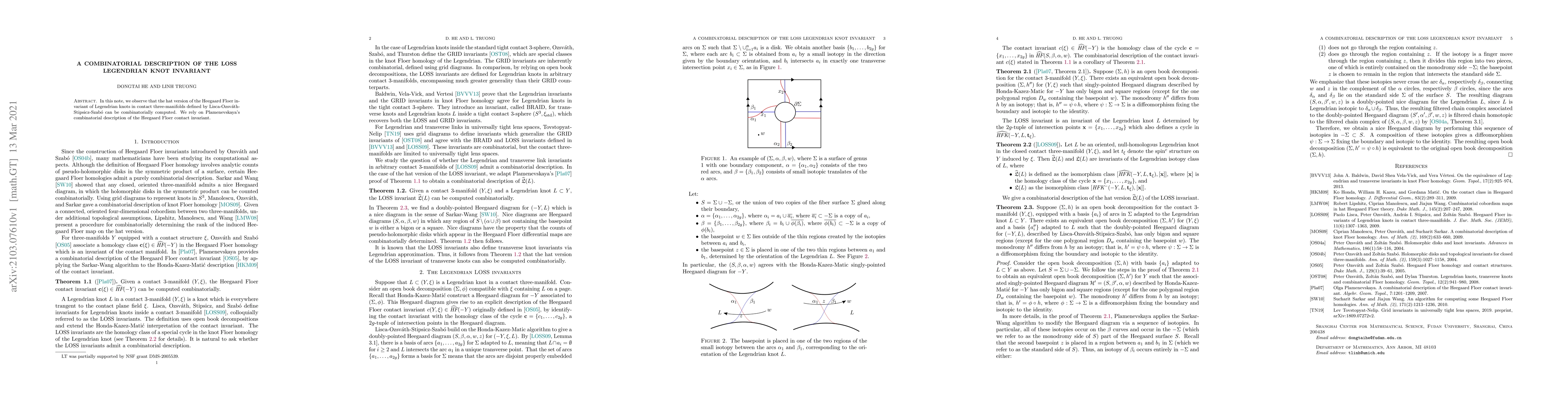 In this note, we observe that the hat version of the Heegaard Floer invariant of Legendrian knots in contact three-manifolds defined by Lisca-Ozsvath-Stipsicz-Szabo can be combinatorially computed. We rely on Plamenevskaya's combinatorial description of the Heegaard Floer contact invariant.