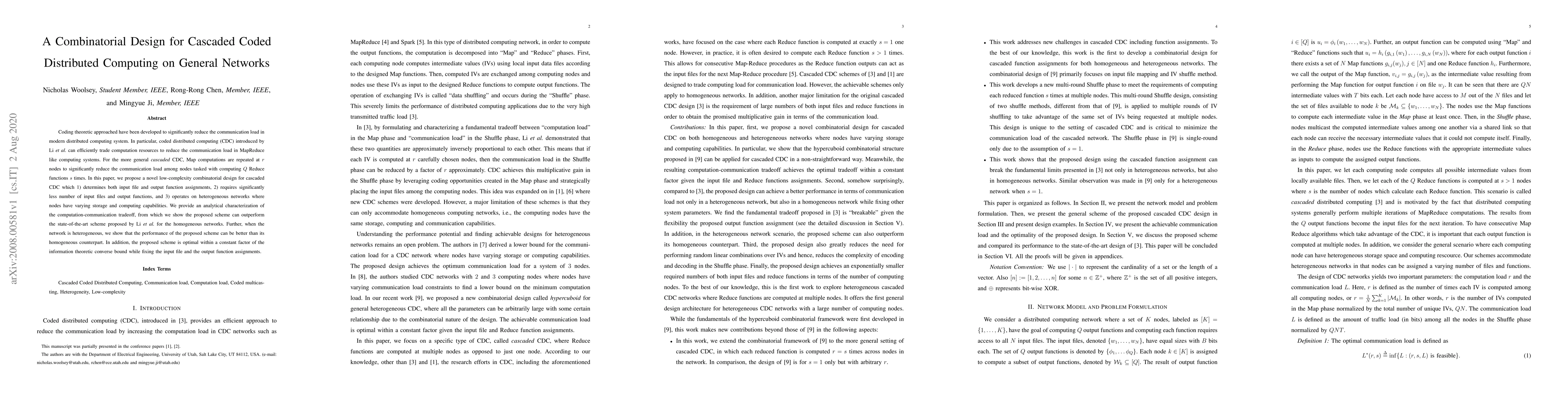 The paper introduces a novel combinatorial design for cascaded CDC, which optimizes the computation-communication tradeoff and reduces communication load in distributed computing systems.