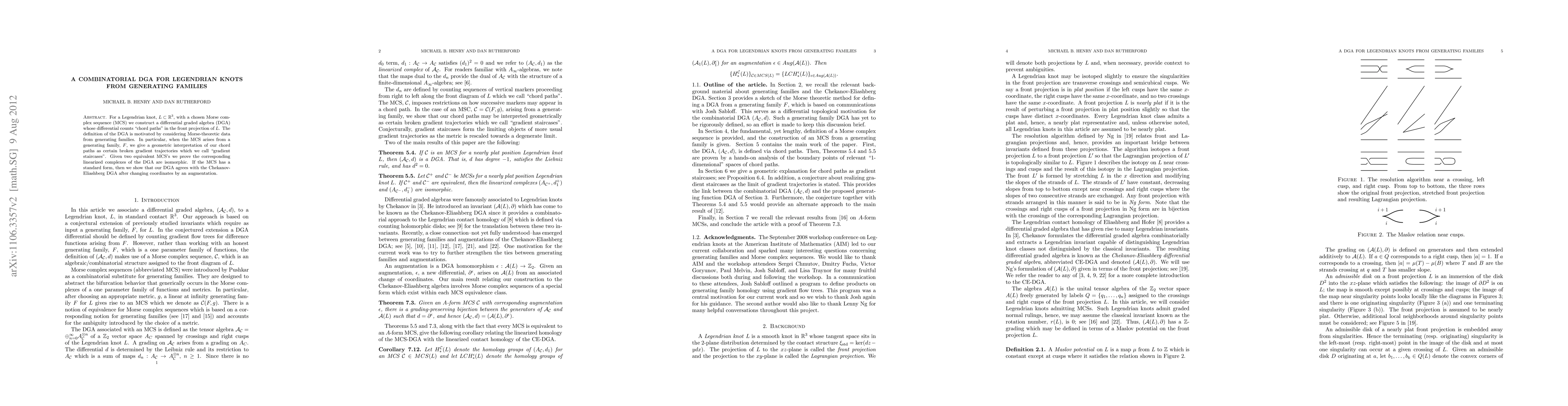For a Legendrian knot L in R^3 with a chosen Morse complex sequence (MCS) we construct a differential graded algebra (DGA) whose differential counts "chord paths" in the front projection of L. The definition of the DGA is motivated by considering Morse-theoretic data from generating families. In particular, when the MCS arises from a generating family we give a geometric interpretation of our chord paths as certain broken gradient trajectories which we call "gradient staircases". Given two equivalent MCS's we prove the corresponding linearized complexes of the DGA are isomorphic. If the MCS has a standard form, then we show that our DGA agrees with the Chekanov-Eliashberg DGA after changing coordinates by an augmentation.