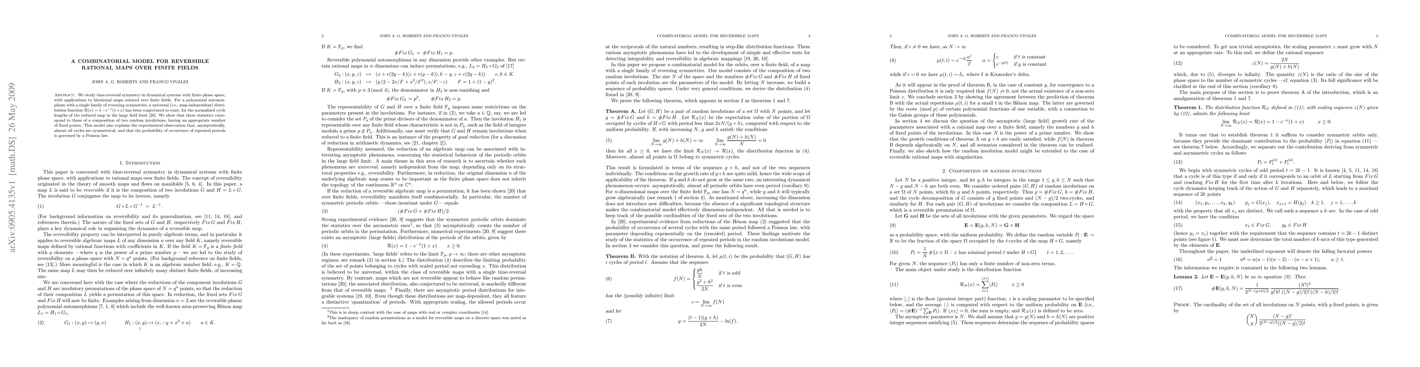 Researchers develop a combinatorial model to explain symmetrical cycles in reversible rational maps over finite fields, showing that these statistics correspond to the composition of random involutions with fixed points, governed by Poisson laws.