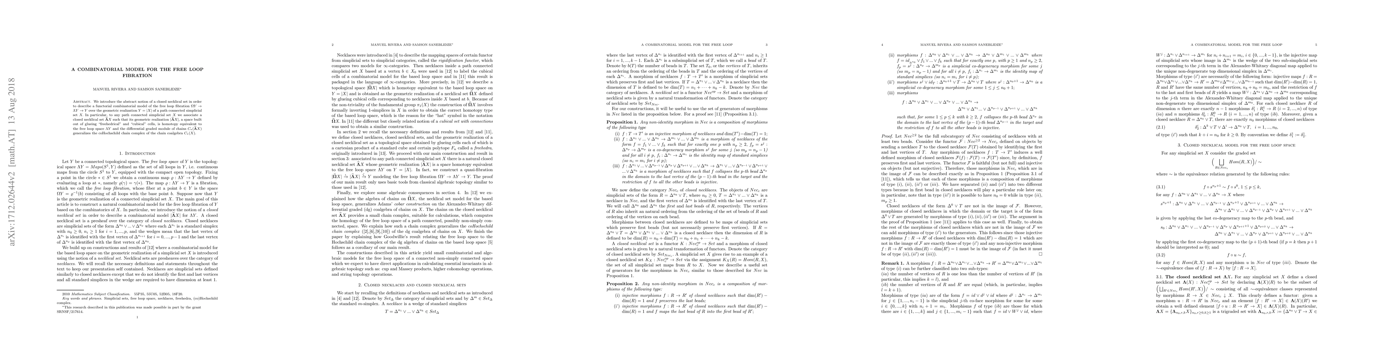 We introduce the abstract notion of a closed necklical set in order to describe a functorial combinatorial model of the free loop fibration $\Omega Y\rightarrow \Lambda Y\rightarrow Y$ over the geometric realization $Y=|X|$ of a path connected simplicial set $X.$ In particular, to any path connected simplicial set $X$ we associate a closed necklical set $\widehat{\mathbf{\Lambda}}X$ such that its geometric realization $|\widehat{\mathbf{\Lambda}}X|$, a space built out of gluing "freehedrical" and "cubical" cells, is homotopy equivalent to the free loop space $\Lambda Y$ and the differential graded module of chains $C_*(\widehat{\mathbf{\Lambda}}X)$ generalizes the coHochschild chain complex of the chain coalgebra $C_\ast(X).$