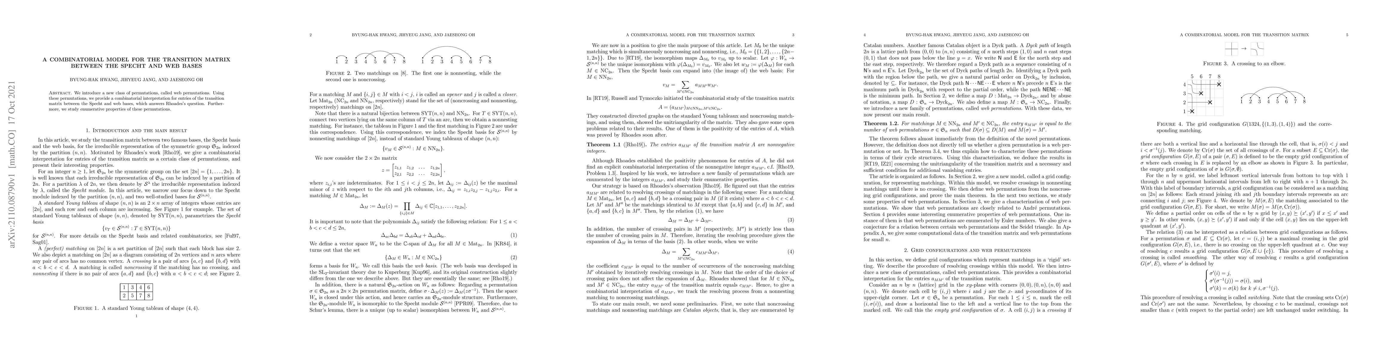 This research introduces 'web permutations' to offer a combinatorial explanation for the transition matrix entries between Specht and web bases, addressing Rhoades's query. It also explores enumerative properties of these permutations.