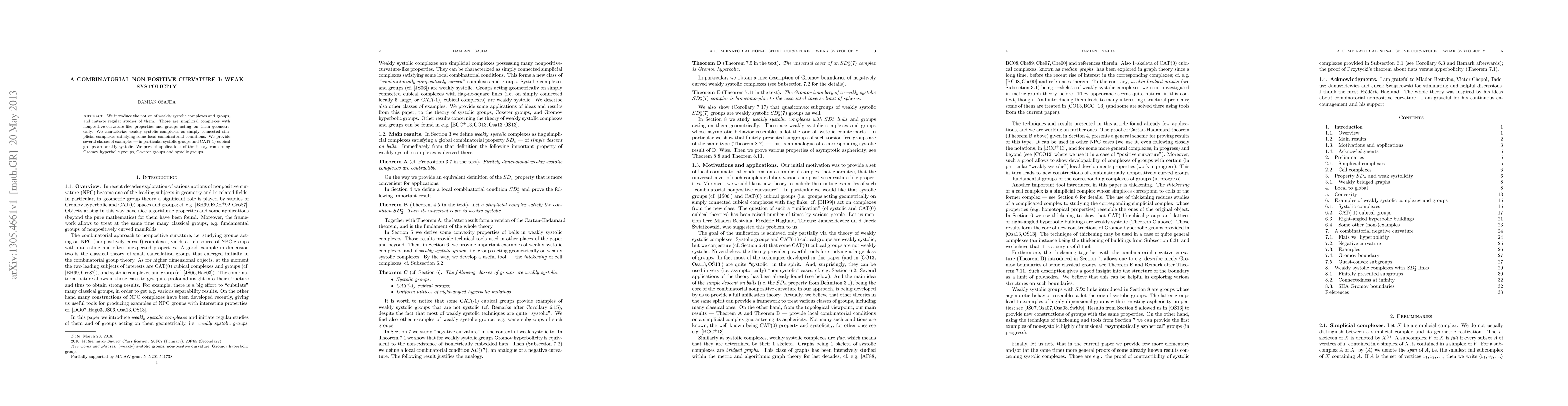 We introduce the notion of weakly systolic complexes and groups, and initiate regular studies of them. Those are simplicial complexes with nonpositive-curvature-like properties and groups acting on them geometrically. We characterize weakly systolic complexes as simply connected simplicial complexes satisfying some local combinatorial conditions. We provide several classes of examples --- in particular systolic groups and CAT(-1) cubical groups are weakly systolic. We present applications of the theory, concerning Gromov hyperbolic groups, Coxeter groups and systolic groups.