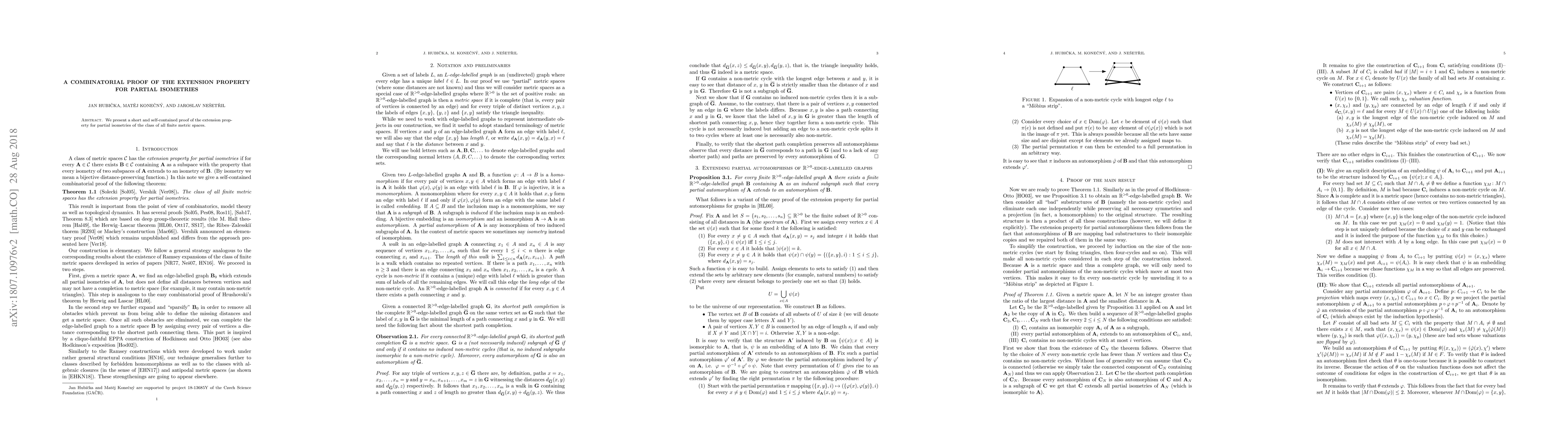 We present a short and self-contained proof of the extension property for partial isometries of the class of all finite metric spaces.