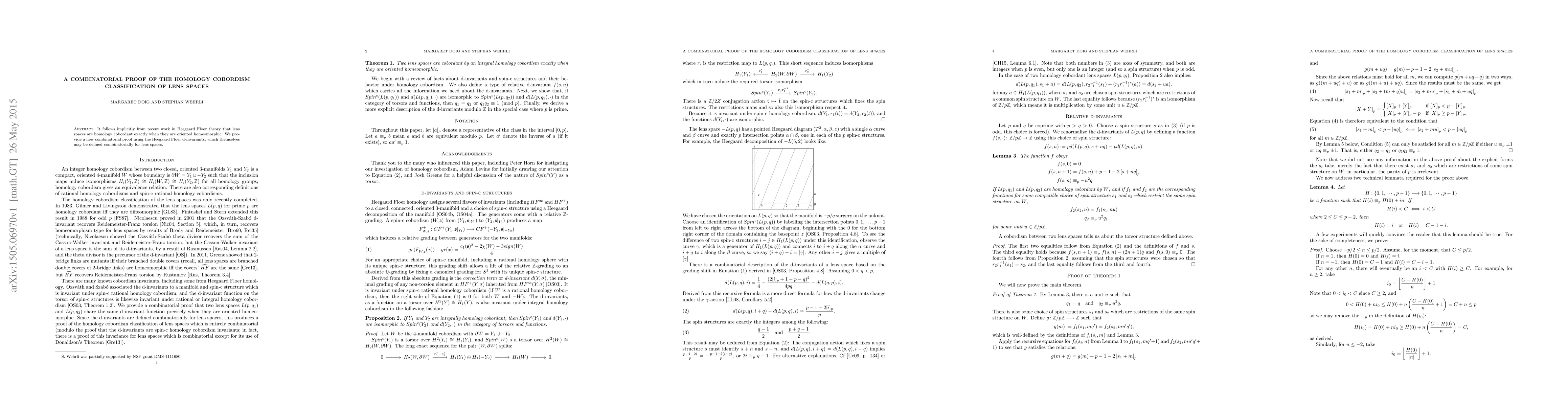 This paper presents a combinatorial proof for the homology cobordism classification of lens spaces, showing that lens spaces are homology cobordant if and only if they are oriented homeomorphic, using Heegaard Floer d-invariants defined combinatorially.