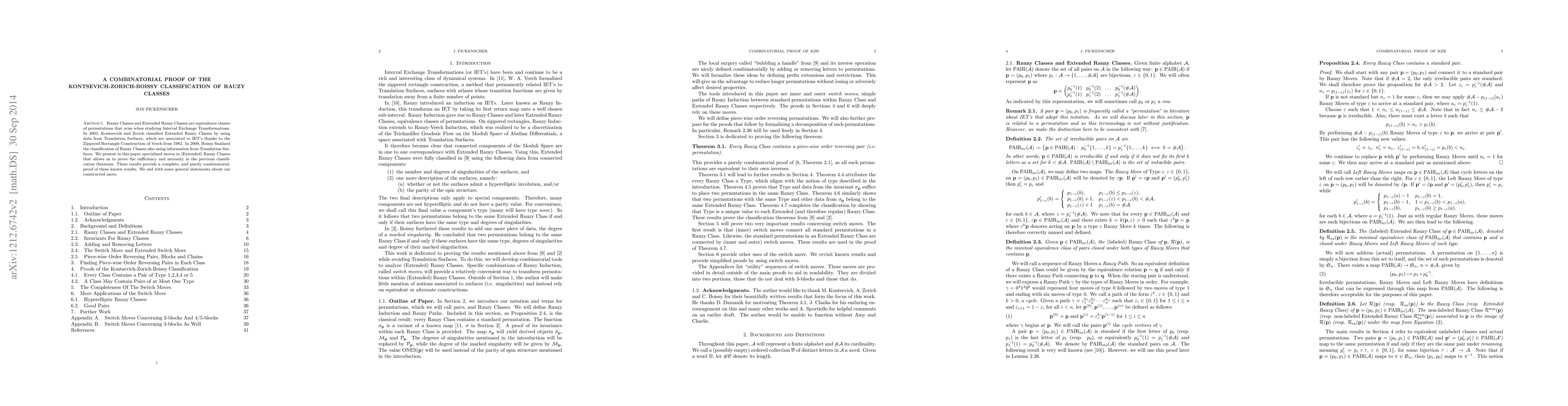 This paper provides a combinatorial proof of the classification of Rauzy Classes by Kontsevich-Zorich and Rauzy Classes by Boissy using specialized moves. It confirms the sufficiency and necessity of the classification theorems through purely combinatorial methods.