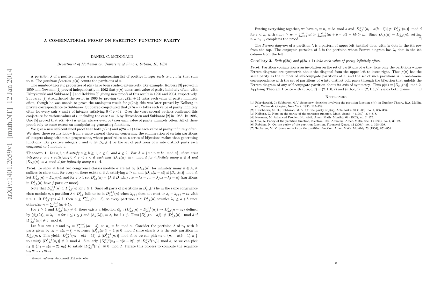 One of the most basic results concerning the number-theoretic properties of the partition function $p(n)$ is that $p(n)$ takes each value of parity infinitely often. This statement was first proved by Kolberg in 1959, and it was strengthened by Subbarao in 1966 to say that both $p(2n)$ and $p(2n+1)$ take each value of parity infinitely often. These results have received several other proofs, each relying to some extent on manipulating generating functions. We give a new, self-contained proof of Subbarao's result by constructing a series of bijections and involutions, along the way getting a more general theorem concerning the enumeration of a special subset of integer partitions.
