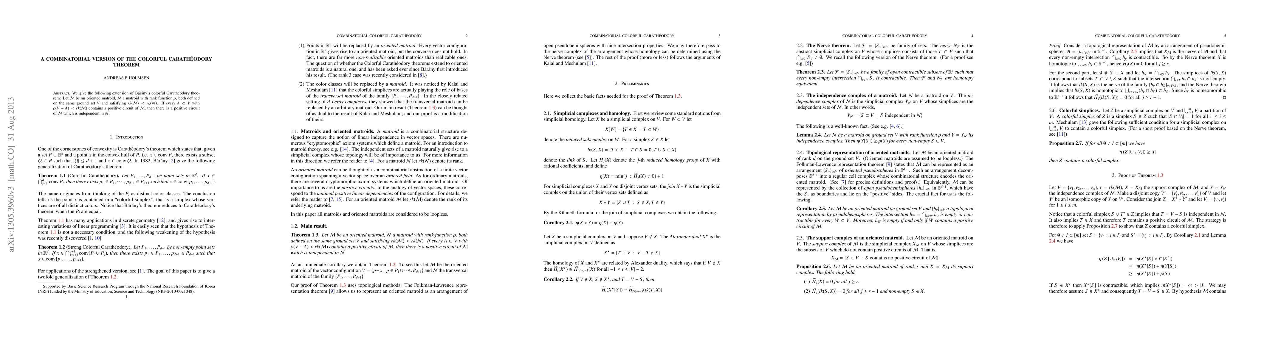 We give the following extension of Barany's colorful Caratheodory theorem: Let M be an oriented matroid and N a matroid with rank function r, both defined on the same ground set V and satisfying rank(M) < rank(N). If every subset A of V with r(V - A) < rank (M) contains a positive circuit of M, then some independent set of N contains a positive circuit of M.