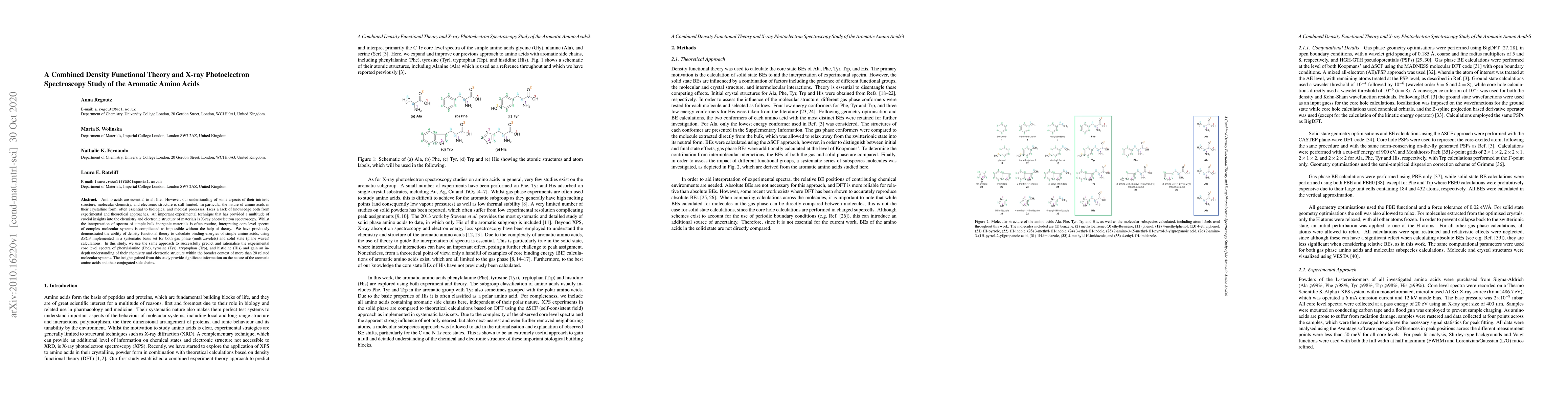 Amino acids are essential to all life. However, our understanding of some aspects of their intrinsic structure, molecular chemistry, and electronic structure is still limited. In particular the nature of amino acids in their crystalline form, often essential to biological and medical processes, faces a lack of knowledge both from experimental and theoretical approaches. An important experimental technique that has provided a multitude of crucial insights into the chemistry and electronic structure of materials is X-ray photoelectron spectroscopy. Whilst the interpretation of spectra of simple bulk inorganic materials is often routine, interpreting core level spectra of complex molecular systems is complicated to impossible without the help of theory. We have previously demonstrated the ability of density functional theory to calculate binding energies of simple amino acids, using $\Delta$SCF implemented in a systematic basis set for both gas phase (multiwavelets) and solid state (plane waves) calculations. In this study, we use the same approach to successfully predict and rationalise the experimental core level spectra of phenylalanine (Phe), tyrosine (Tyr), tryptophan (Trp), and histidine (His) and gain an in-depth understanding of their chemistry and electronic structure within the broader context of more than 20 related molecular systems. The insights gained from this study provide significant information on the nature of the aromatic amino acids and their conjugated side chains.