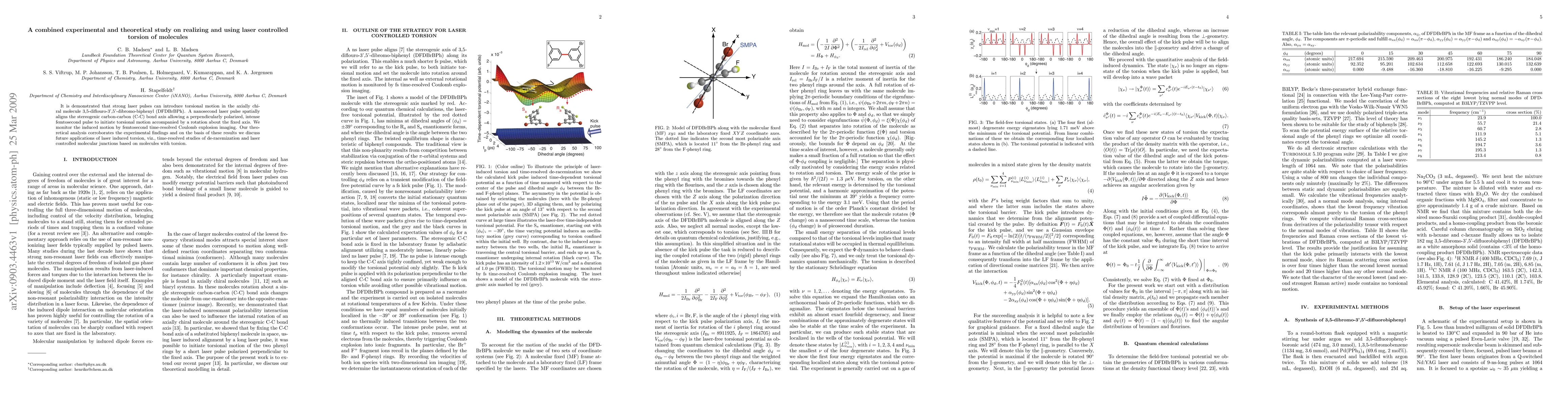 This study demonstrates the use of strong laser pulses to induce torsional motion in the chiral molecule DFDBrBPh, utilizing femtosecond time-resolved Coulomb explosion imaging to monitor the effects. The theoretical analysis supports the experimental findings and explores potential applications in de-racemization and laser-controlled molecular junctions.