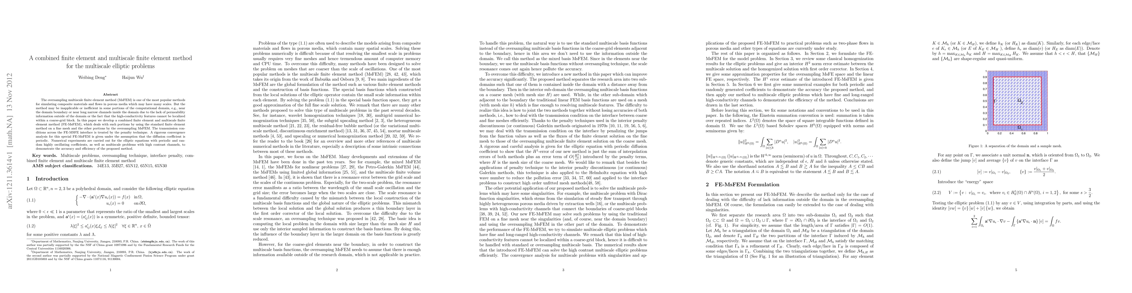 This paper proposes a combined finite element and multiscale finite element method (FE-MsFEM) to efficiently solve multiscale elliptic problems, using standard FEM for localized high-conductivity features and MsFEM for broader regions, with a rigorous convergence analysis and numerical experiments demonstrating its accuracy and efficiency.