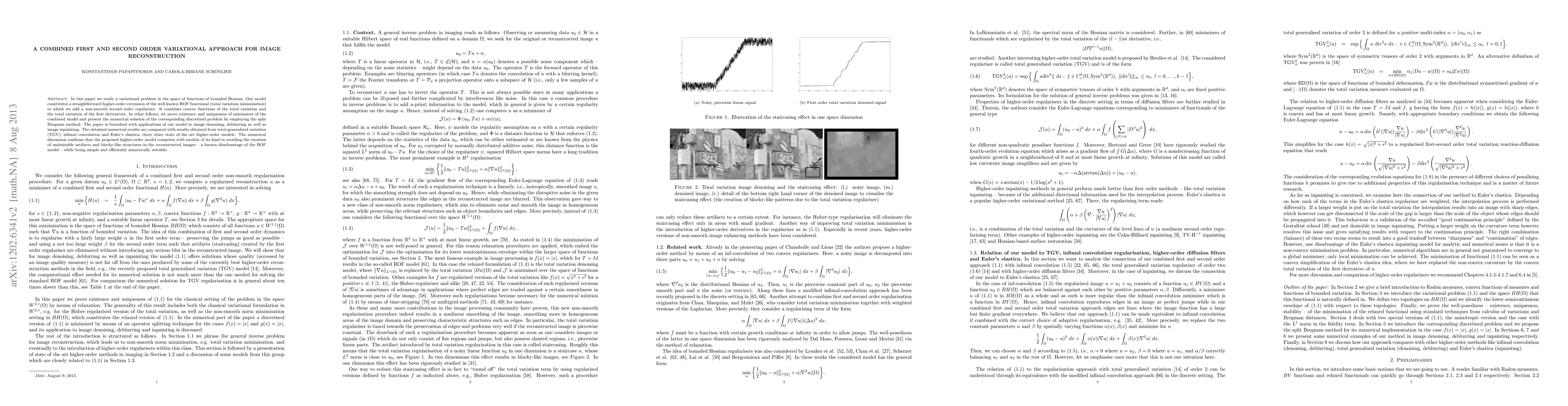 This paper proposes a combined first and second-order variational approach for image reconstruction, outperforming state-of-the-art models in avoiding artifacts while being simple to solve numerically.