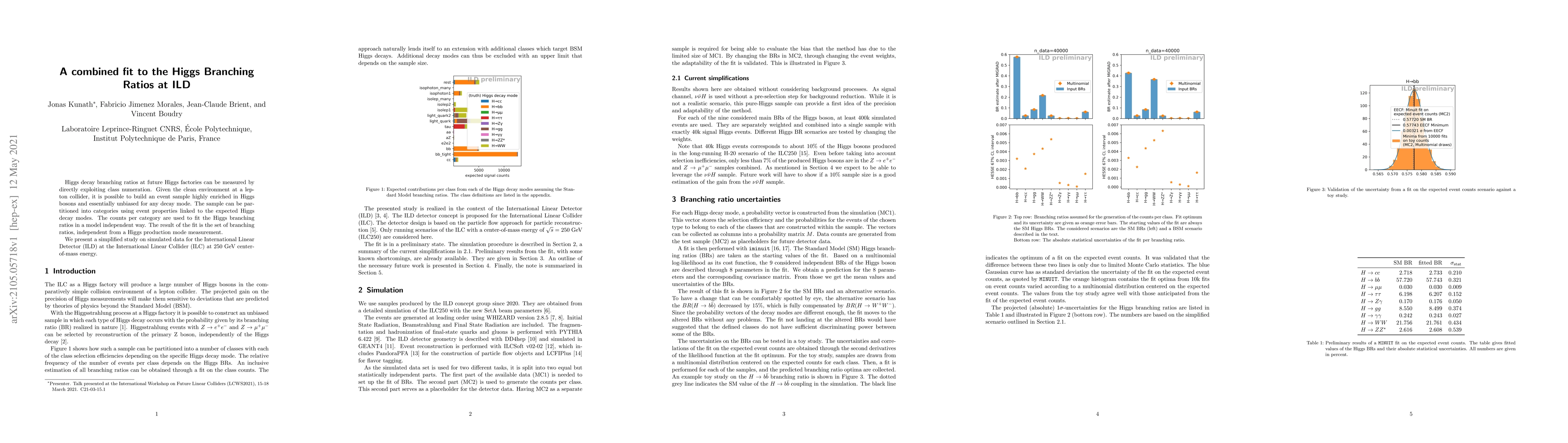 Higgs decay branching ratios at future Higgs factories can be measured by directly exploiting class numeration. Given the clean environment at a lepton collider, it is possible to build an event sample highly enriched in Higgs bosons and essentially unbiased for any decay mode. The sample can be partitioned into categories using event properties linked to the expected Higgs decay modes. The counts per category are used to fit the Higgs branching ratios in a model independent way. The result of the fit is the set of branching ratios, independent from a Higgs production mode measurement. We present a simplified study on simulated data for the International Linear Detector (ILD) at the International Linear Collider (ILC) at 250 GeV center-of-mass energy.