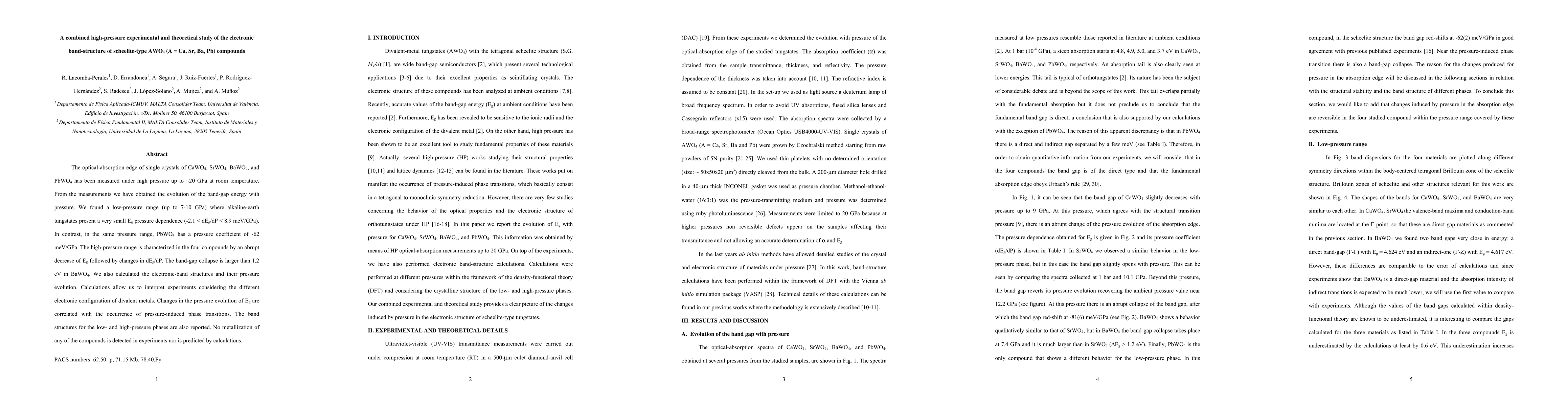 The optical-absorption edge of single crystals of CaWO4, SrWO4, BaWO4, and PbWO4 has been measured under high pressure up to ~20 GPa at room temperature. From the measurements we have obtained the evolution of the band-gap energy with pressure. We found a low-pressure range (up to 7-10 GPa) where alkaline-earth tungstates present a very small Eg pressure dependence (-2.1 < dEg/dP < 8.9 meV/GPa). In contrast, in the same pressure range, PbWO4 has a pressure coefficient of -62 meV/GPa. The high-pressure range is characterized in the four compounds by an abrupt decrease of Eg followed by changes in dEg/dP. The band-gap collapse is larger than 1.2 eV in BaWO4. We also calculated the electronic-band structures and their pressure evolution. Calculations allow us to interpret experiments considering the different electronic configuration of divalent metals. Changes in the pressure evolution of Eg are correlated with the occurrence of pressure-induced phase transitions. The band structures for the low- and high-pressure phases are also reported. No metallization of any of the compounds is detected in experiments nor is predicted by calculations.