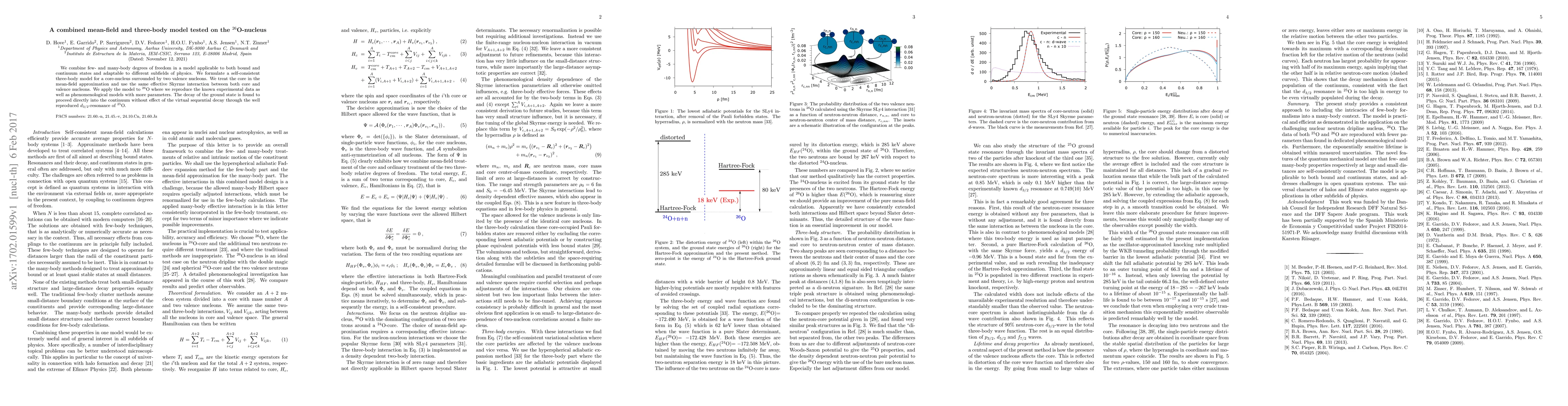 We combine few- and many-body degrees of freedom in a model applicable to both bound and continuum states and adaptable to different subfields of physics. We formulate a self-consistent three-body model for a core-nucleus surrounded by two valence nucleons. We treat the core in the mean-field approximation and use the same effective Skyrme interaction between both core and valence nucleons. We apply the model to $^{26}$O where we reproduce the known experimental data as well as phenomenological models with more parameters. The decay of the ground state is found to proceed directly into the continuum without effect of the virtual sequential decay through the well reproduced $d_{3/2}$-resonance of $^{25}$O.
