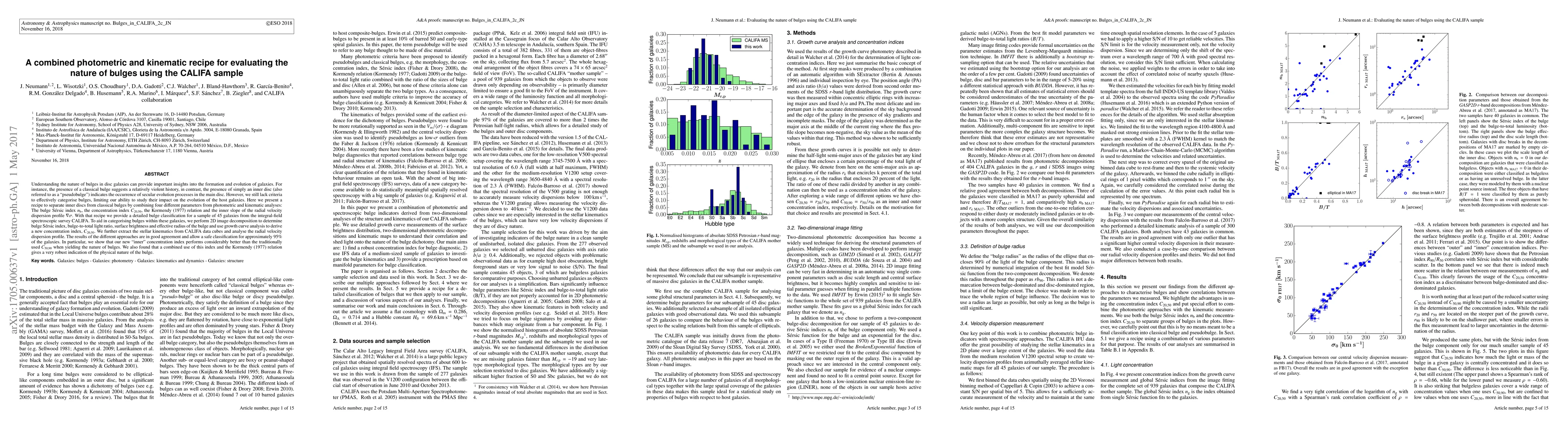 This research presents a method to classify galaxy bulges as classical bulges or pseudobulges using photometric and kinematic parameters from the CALIFA survey. By combining Sersic index, concentration index, Kormendy relation, and velocity dispersion profile, they successfully categorized ~95% of 45 galaxies, finding the new concentration index effective and the combined Kormendy relation robust for bulge nature determination.