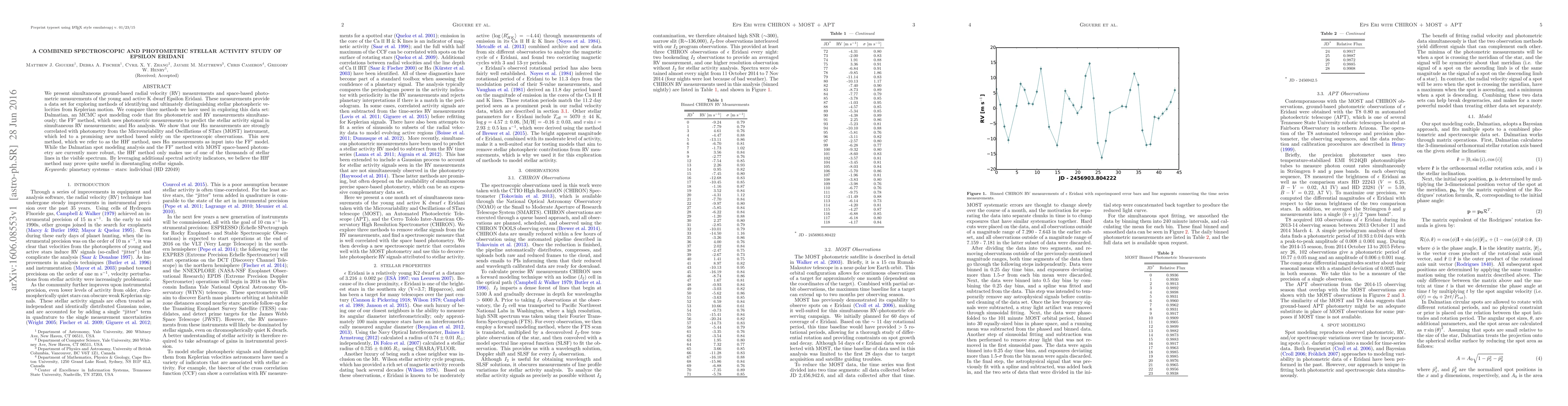 We present simultaneous ground-based radial velocity (RV) measurements and space-based photometric measurements of the young and active K dwarf Epsilon Eridani. These measurements provide a data set for exploring methods of identifying and ultimately distinguishing stellar photospheric velocities from Keplerian motion. We compare three methods we have used in exploring this data set: Dalmatian, an MCMC spot modeling code that fits photometric and RV measurements simultaneously; the FF$'$ method, which uses photometric measurements to predict the stellar activity signal in simultaneous RV measurements; and H$\alpha$ analysis. We show that our H$\alpha$ measurements are strongly correlated with photometry from the Microvariability and Oscillations of STars (MOST) instrument, which led to a promising new method based solely on the spectroscopic observations. This new method, which we refer to as the HH$'$ method, uses H$\alpha$ measurements as input into the FF$'$ model. While the Dalmatian spot modeling analysis and the FF$'$ method with MOST space-based photometry are currently more robust, the HH$'$ method only makes use of one of the thousands of stellar lines in the visible spectrum. By leveraging additional spectral activity indicators, we believe the HH$'$ method may prove quite useful in disentangling stellar signals.