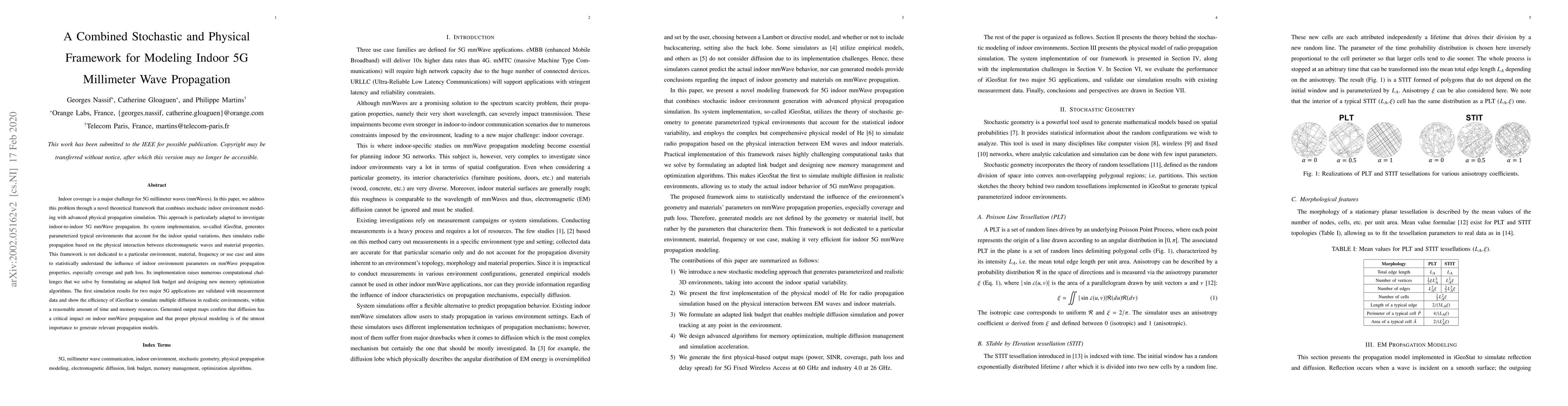 This paper proposes a combined stochastic and physical framework, iGeoStat, to model indoor 5G millimeter wave propagation, addressing coverage challenges through parameterized environment modeling and advanced physical propagation simulation. Initial simulation results validate the framework's efficiency and highlight the importance of diffusion and physical modeling in realistic indoor settings.
