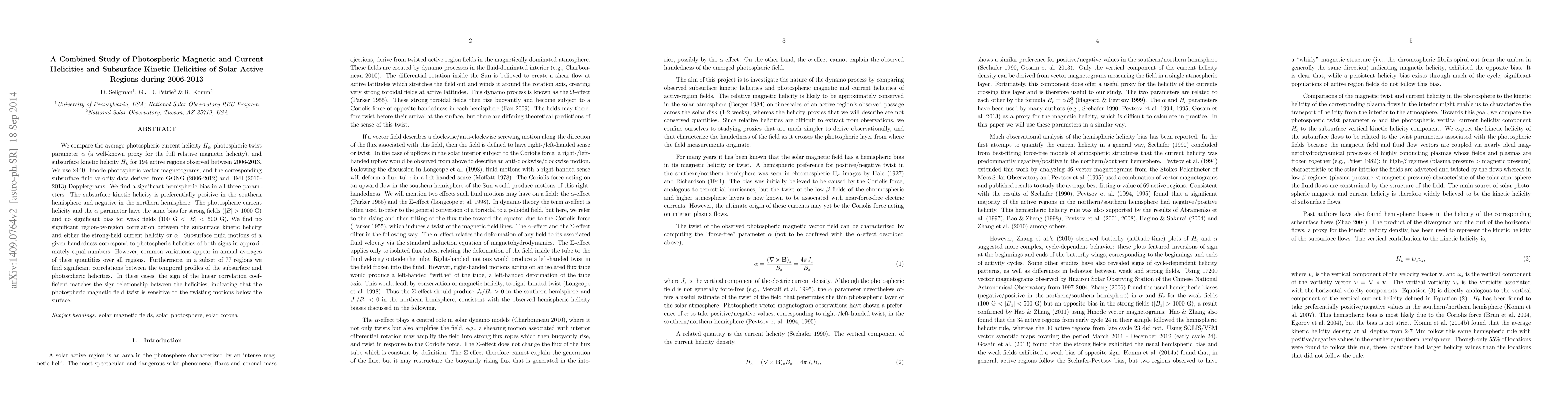 This study analyzes the relationship between photospheric current helicity, subsurface kinetic helicity, and the subsurface fluid twist for solar active regions from 2006-2013, revealing hemispheric biases and correlations in certain strong magnetic fields. It finds no significant region-to-region correlation between subsurface and photospheric helicities but does detect common annual variations and significant temporal correlations in a subset of 77 regions.