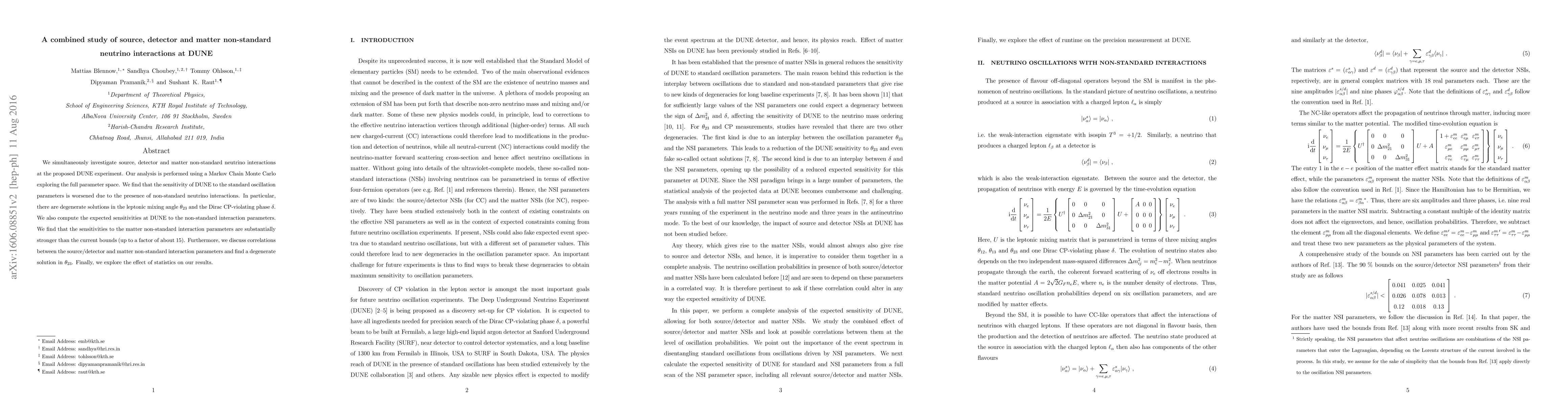 We simultaneously investigate source, detector and matter non-standard neutrino interactions at the proposed DUNE experiment. Our analysis is performed using a Markov Chain Monte Carlo exploring the full parameter space. We find that the sensitivity of DUNE to the standard oscillation parameters is worsened due to the presence of non-standard neutrino interactions. In particular, there are degenerate solutions in the leptonic mixing angle $\theta_{23}$ and the Dirac CP-violating phase $\delta$. We also compute the expected sensitivities at DUNE to the non-standard interaction parameters. We find that the sensitivities to the matter non-standard interaction parameters are substantially stronger than the current bounds (up to a factor of about 15). Furthermore, we discuss correlations between the source/detector and matter non-standard interaction parameters and find a degenerate solution in $\theta_{23}$. Finally, we explore the effect of statistics on our results.