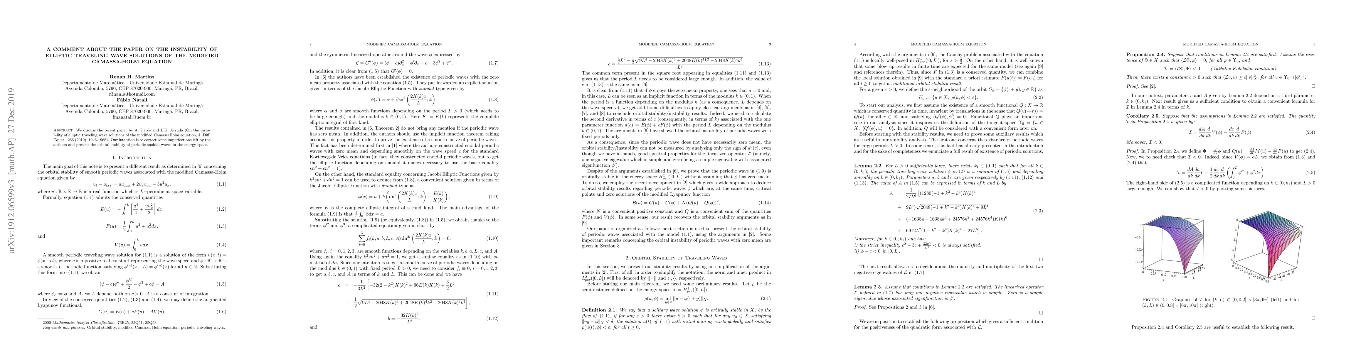 We discuss the recent paper by A. Dar\'os and L.K. Arruda (On the instability of elliptic traveling wave solutions of the modified Camassa-Holm equation, J. Diff. Equat., 266 (2019), 1946-1968). Our intention is to correct some imperfections left by the authors and present the orbital stability of periodic snoidal waves in the energy space.