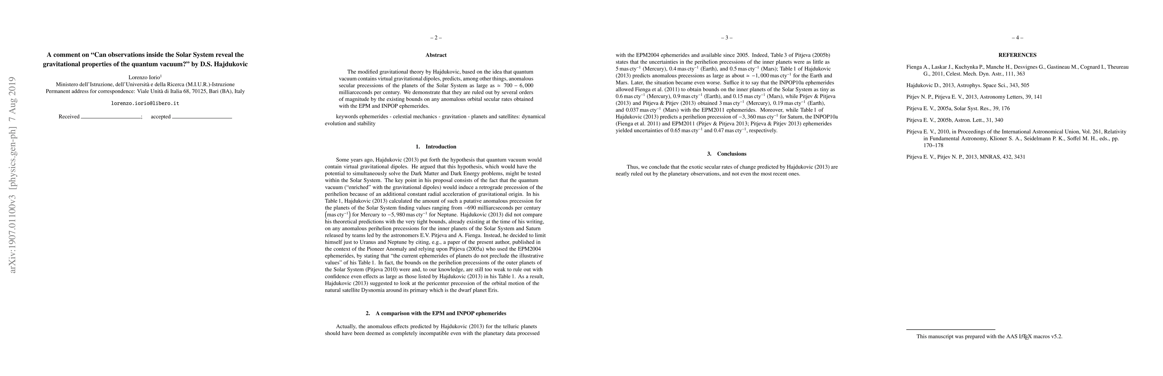 The modified gravitational theory by Hajdukovic [arXiv:1210.7421], based on the idea that quantum vacuum contains virtual gravitational dipoles, predicts, among other things, anomalous secular precessions of the planets of the Solar System as large as $\simeq 700-6,000$ milliarceconds per century. We demonstrate that they are ruled out by several orders of magnitude by the existing bounds on any anomalous orbital secular rates obtained with the EPM and INPOP ephemerides.