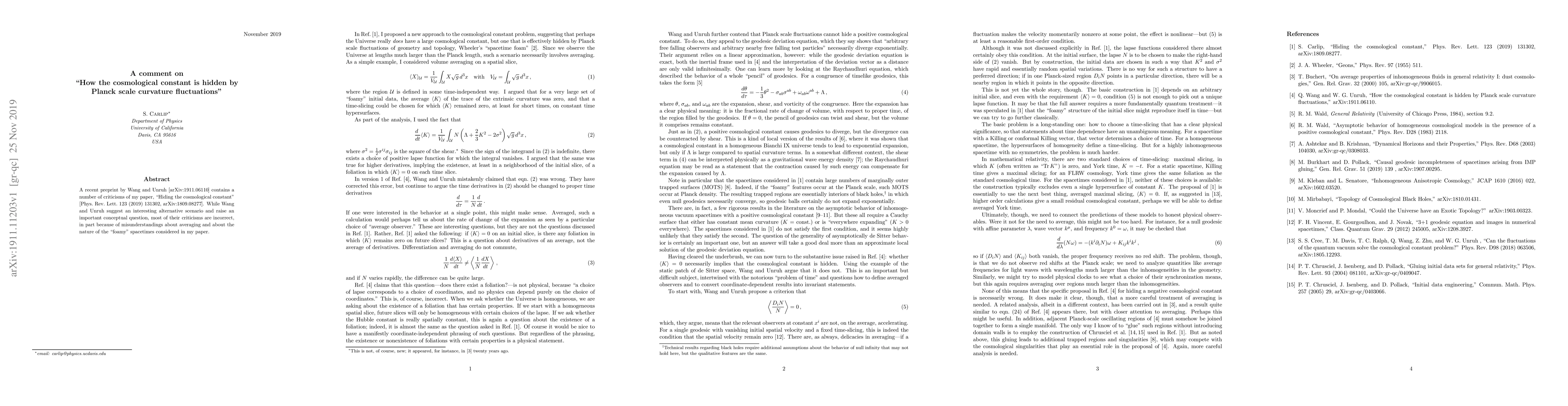 A recent preprint by Wang and Unruh [arXiv:1911.06110] contains a number of criticisms of my paper, "Hiding the cosmological constant" [Phys. Rev. Lett. 123 (2019) 131302, arXiv:1809.08277]. While Wang and Unruh suggest an interesting alternative scenario and raise an important conceptual question, most of their criticisms are incorrect, in part because of misunderstandings about averaging and about the nature of the "foamy" spacetimes considered in my paper.