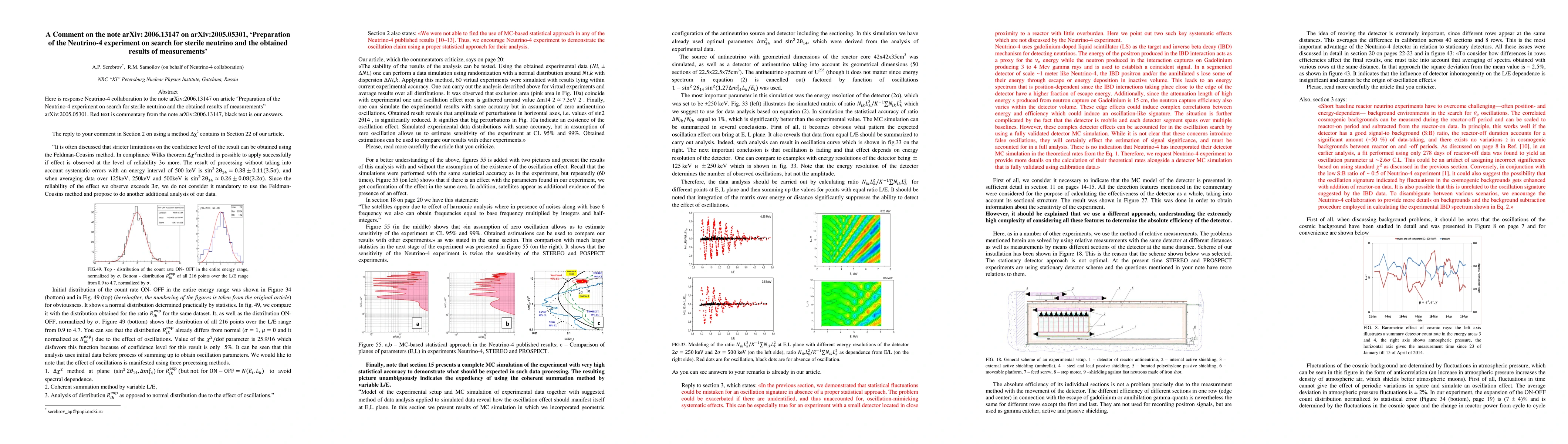 Here is response Neutrino-4 collaboration to the note arXiv:2006.13147 on article "Preparation of the Neutrino-4 experiment on search for sterile neutrino and the obtained results of measurements" arXiv:2005.05301. Red text is commentary from the note arXiv:2006.13147, black text is our answers.