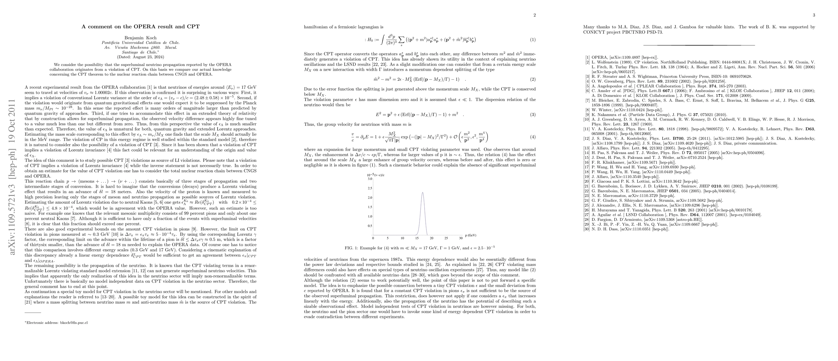 We consider the possibility that the superluminal neutrino propagation reported by the OPERA collaboration originates from a violation of CPT. On this basis we compare our actual knowledge concerning the CPT theorem to the nuclear reaction chain between CNGS and OPERA.