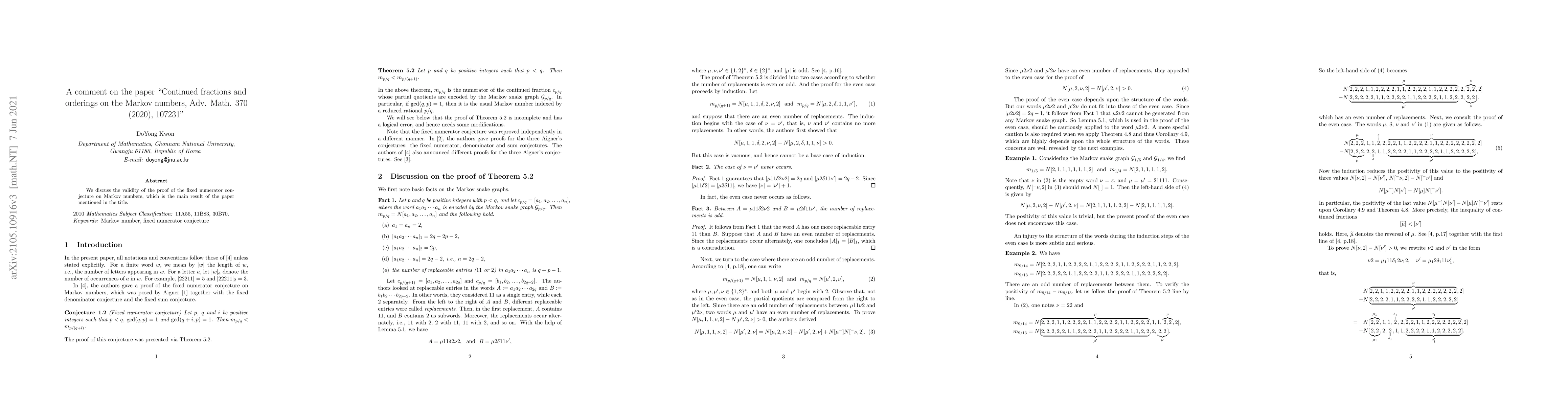 The paper questioned the proof of the fixed numerator conjecture on Markov numbers, a mathematical concept related to continued fractions and orderings. The authors aimed to identify potential flaws or inconsistencies in the original proof.