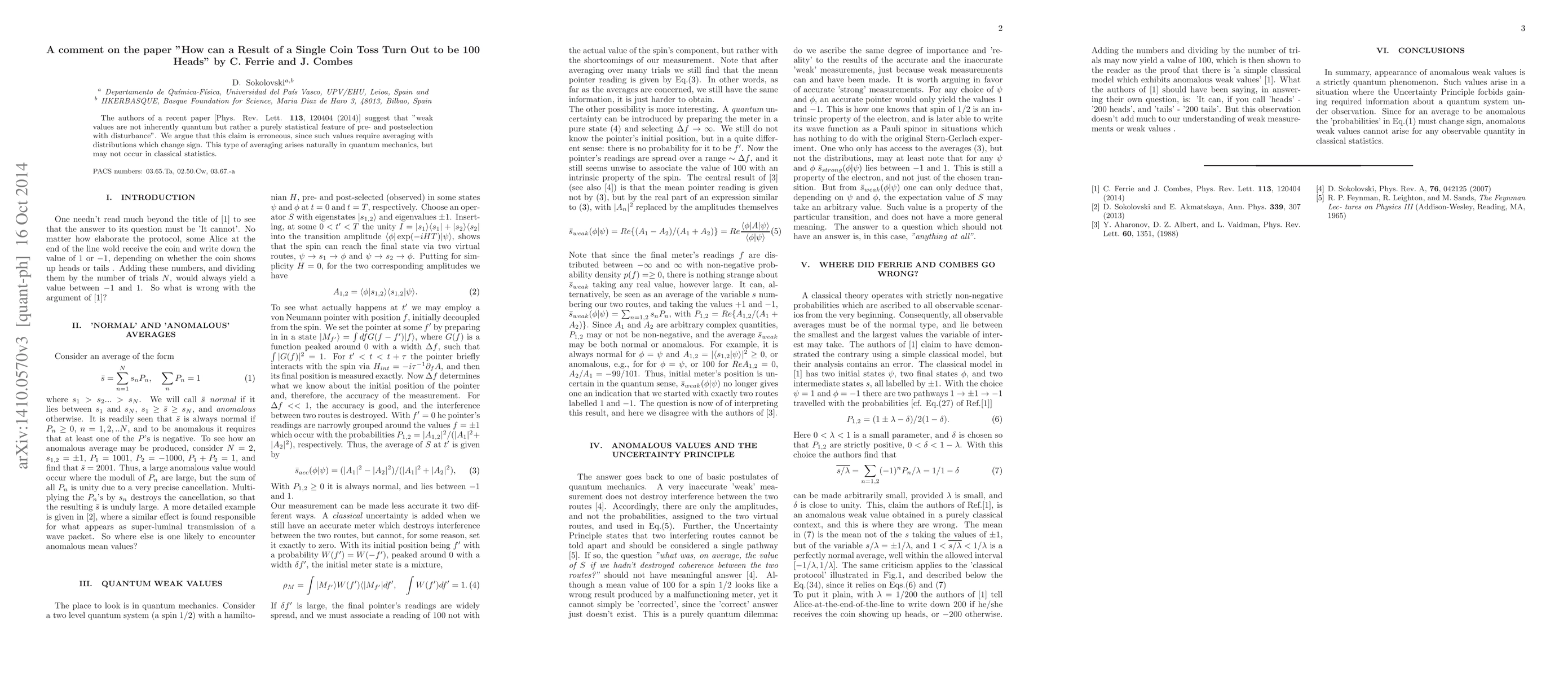 The authors of a recent paper [Phys. Rev. Lett. 113, 120404 (2014)] suggest that "weak values are not inherently quantum but rather a purely statistical feature of pre- and postselection with disturbance". We argue that this claim is erroneous, since such values require averaging with distributions which change sign. This type of averaging arises naturally in quantum mechanics, but may not occur in classical statistics.