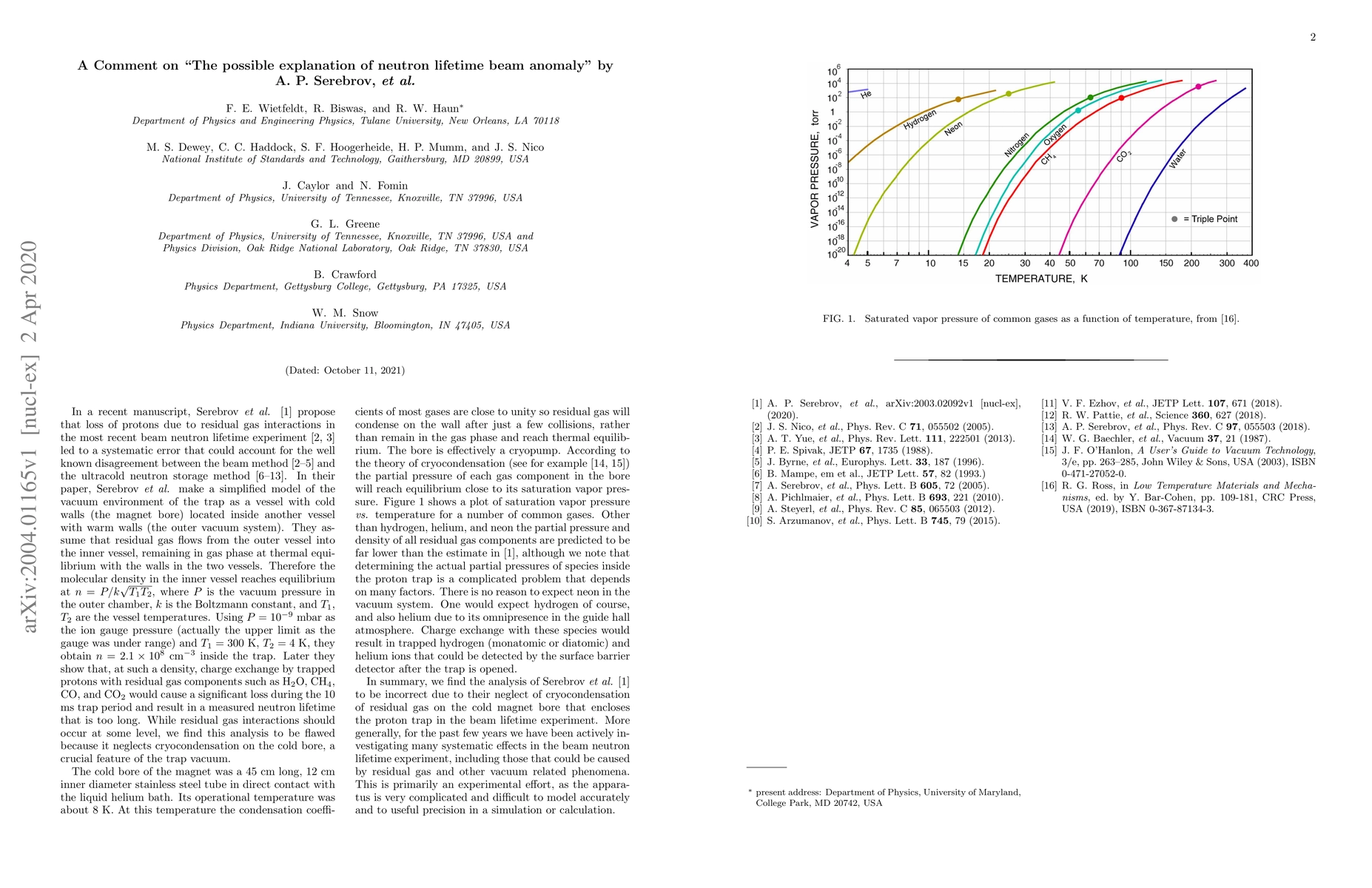 We comment on a recent manuscript by A. P. Serebrov, et al. regarding residual gas charge exchange in the beam neutron lifetime experiment