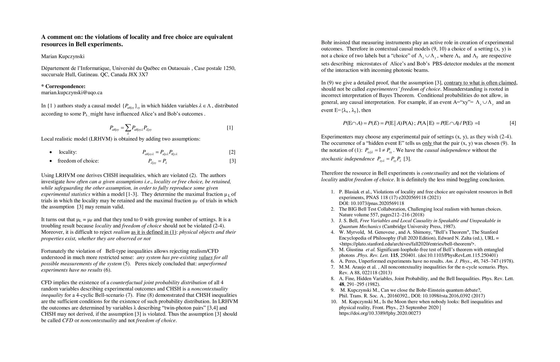 In a recent paper published in PNAS authors prove that locality and free choice are equivalent resources which need to be relaxed in order to fully reproduce some statistics in Bell experiments (while always maintaining realism). We explain that their assumption of free choice is simply counterfactual definiteness or noncontextuality. Therefore the resource in Bell experiments is contextuality and not the violations of locality and/or of free choice. It is definitely less mind boggling conclusion because experimenters` freedom of choice is a prerequisite of science,