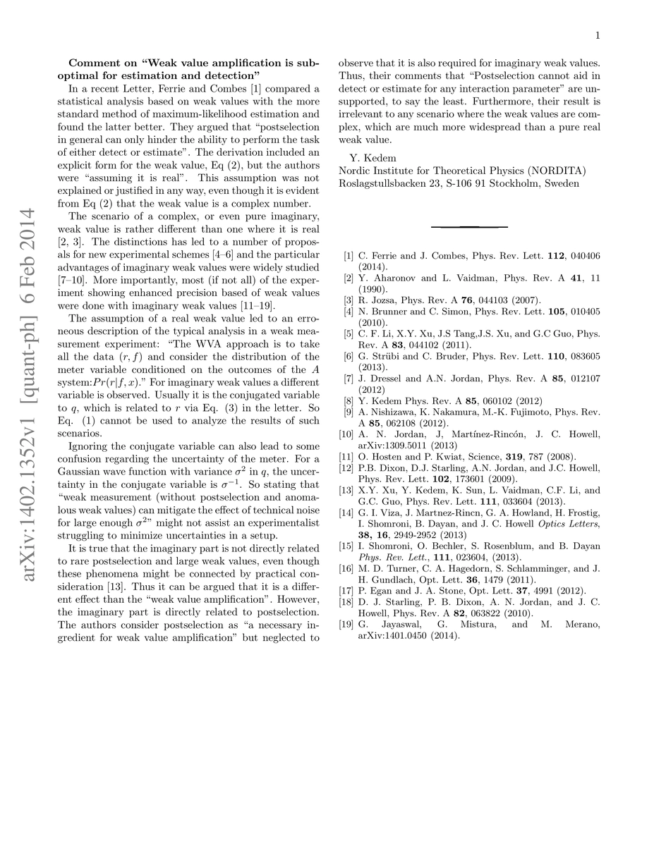 By assuming that the weak value is real, Ferrie and Combes render their result inapplicable to weak measurement experiments which are aimed at enhancing precision.