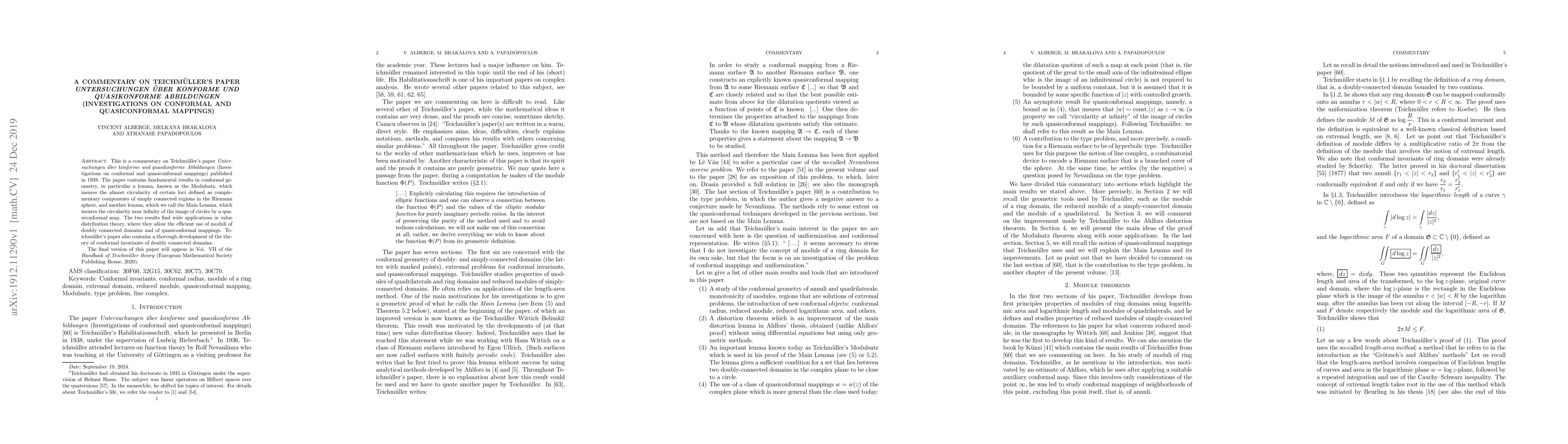 This is a commentary on Teichm{\"u}ller's paper Unter-suchungen{\"u}ber konforme und quasikonforme Abbildungen (Inves-tigations on conformal and quasiconformal mappings) published in 1938. The paper contains fundamental results in conformal geometry , in particular a lemma, known as the Modulsatz, which insures the almost circularity of certain loci defined as complementary components of simply connected regions in the Riemann sphere, and another lemma, which we call the Main Lemma, which insures the circularity near infinity of the image of circles by a qua-siconformal map. The two results find wide applications in value distribution theory, where they allow the efficient use of moduli of doubly connected domains and of quasiconformal mappings. Te-ichm{\"u}ller's paper also contains a thorough development of the theory of conformal invariants of doubly connected domains.The final version of this paper will appear in Vol. VII of the \emph{Handbook of Teichm{\"u}ller theory} (European Mathematical Society Publishing House, 2020).