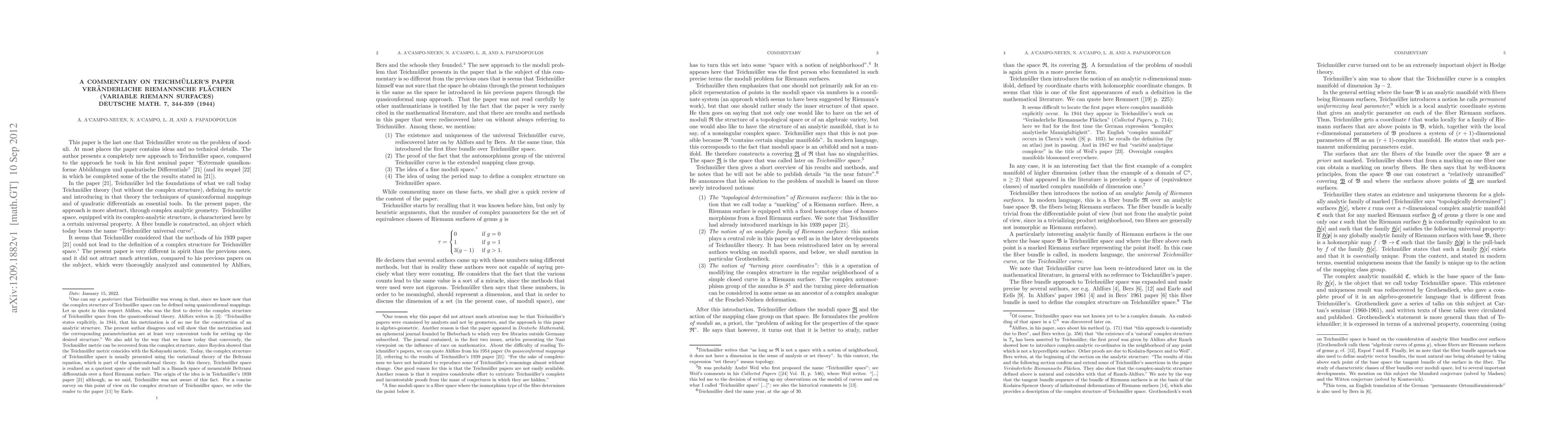This commentary on Teichmüller's 1944 paper "Variable Riemann Surfaces" highlights his new approach to Teichmüller space, characterized by a universal property using complex analytic geometry. It introduces significant ideas such as the universal Teichmüller curve, the extended mapping class group, and the use of the period map to define a complex structure.