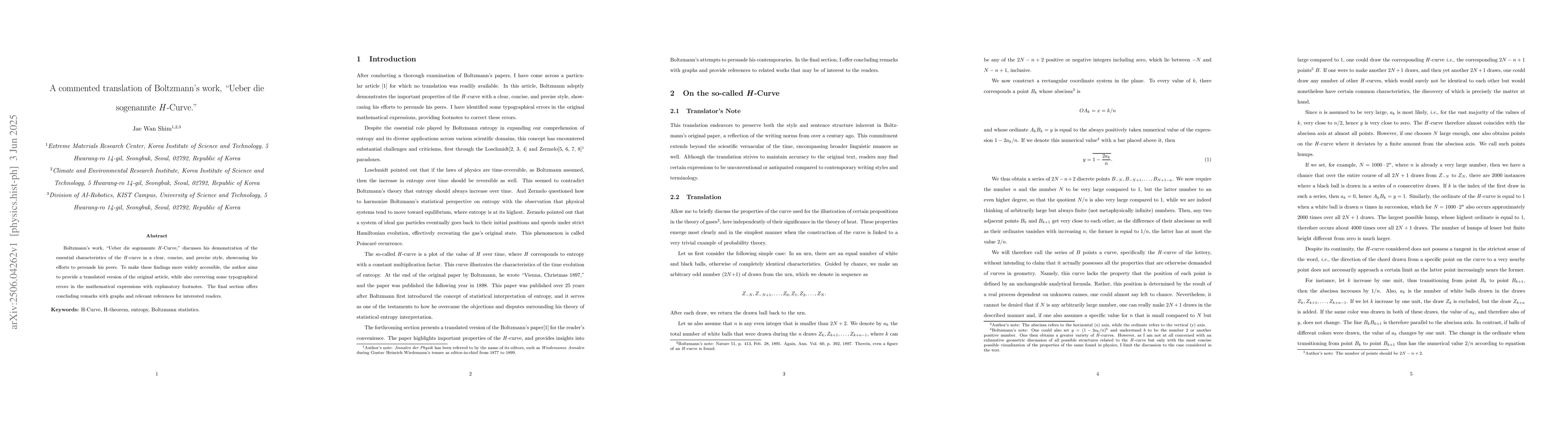 The research methodology involves translating and correcting Boltzmann's original work 'Ueber die sogenannte H-Curve' with explanatory footnotes to clarify mathematical expressions and make the content more accessible.