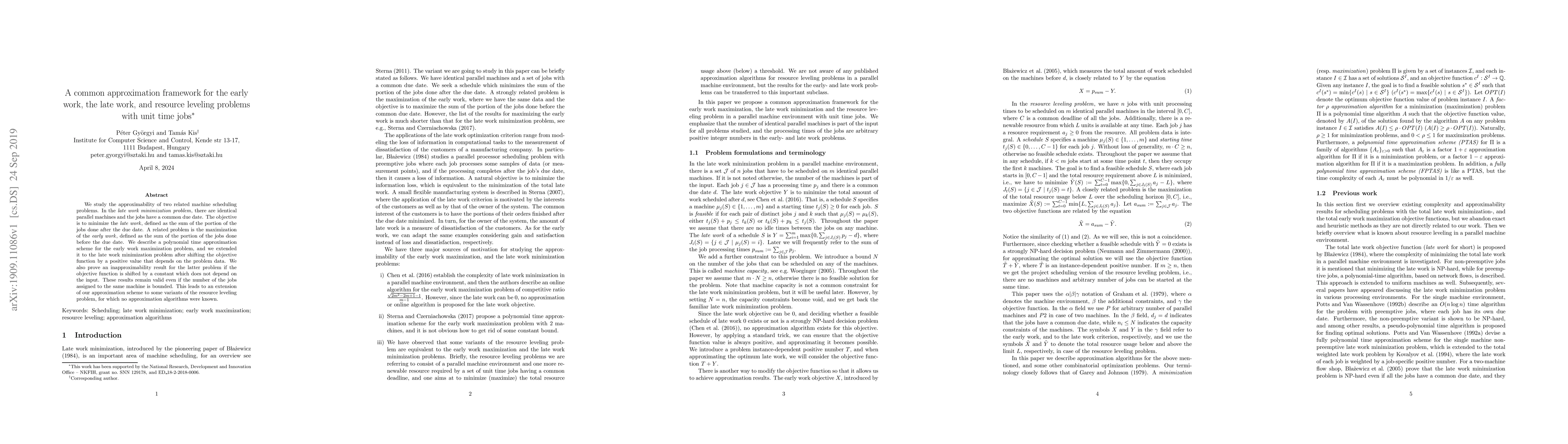 This paper presents a polynomial time approximation scheme for maximizing early work in machine scheduling problems and extends it to minimize late work, while also proving inapproximability results for certain conditions. The findings also apply to variants of the resource leveling problem.