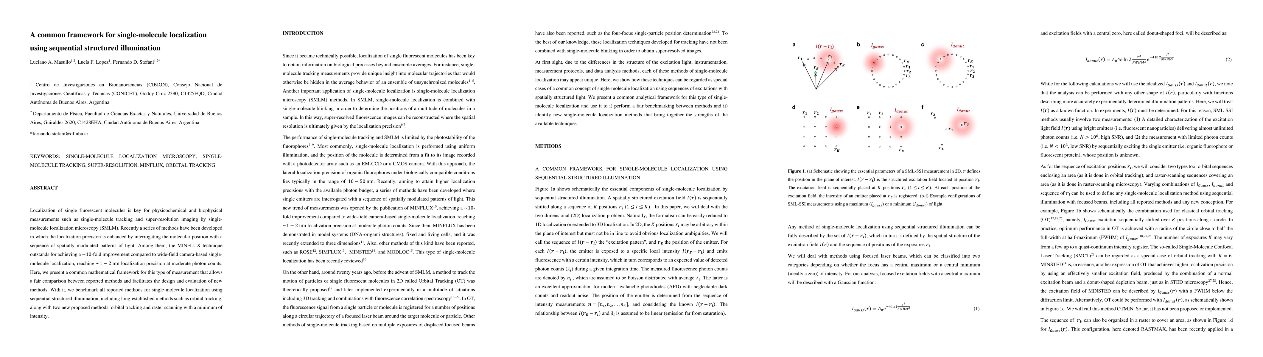 This paper introduces a unified mathematical framework for evaluating single-molecule localization techniques using sequential structured illumination, highlighting the MINFLUX method's ~10-fold precision improvement. It benchmarks existing and new methods, including orbital tracking and a novel raster scanning approach.