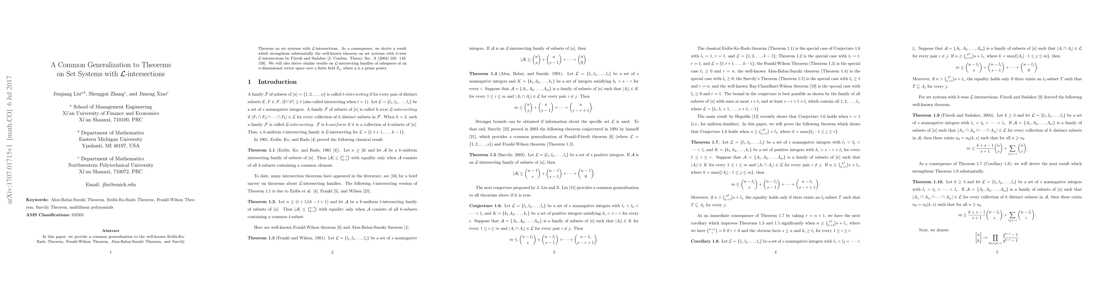 In this paper, we provide a common generalization to the well-known Erd\H{o}s-Ko-Rado Theorem, Frankl-Wilson Theorem, Alon-Babai-Suzuki Theorem, and Snevily Theorem on set systems with $\mathcal{L}$-intersections. As a consequence, we derive a result which strengthens substantially the well-known theorem on set systems with $k$-wise $\mathcal{L}$-intersections by F$\ddot{u}$redi and Sudakov [J. Combin. Theory, Ser. A (2004) 105: 143-159]. We will also derive similar results on $\mathcal{L}$-intersecting families of subspaces of an $n$-dimensional vector space over a finite field $\mathbb{F}_{q}$, where $q$ is a prime power.