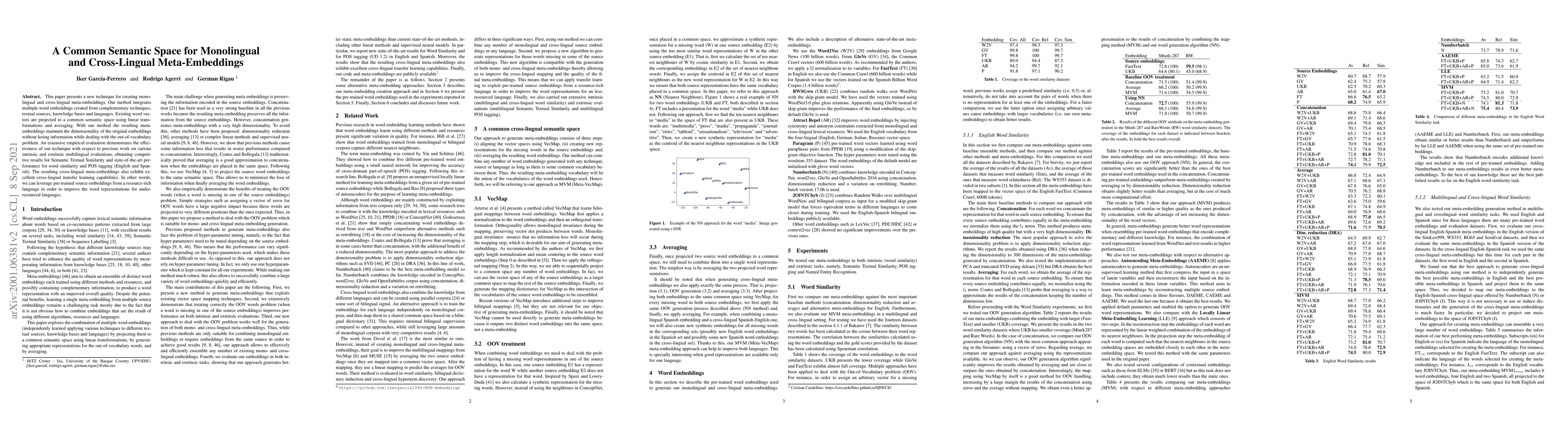 This paper introduces a method for creating monolingual and cross-lingual meta-embeddings by projecting existing word vectors into a common semantic space, preserving dimensionality and information while addressing the out-of-vocabulary problem. The technique shows competitive results in multilingual evaluations and enhances transfer learning across languages.