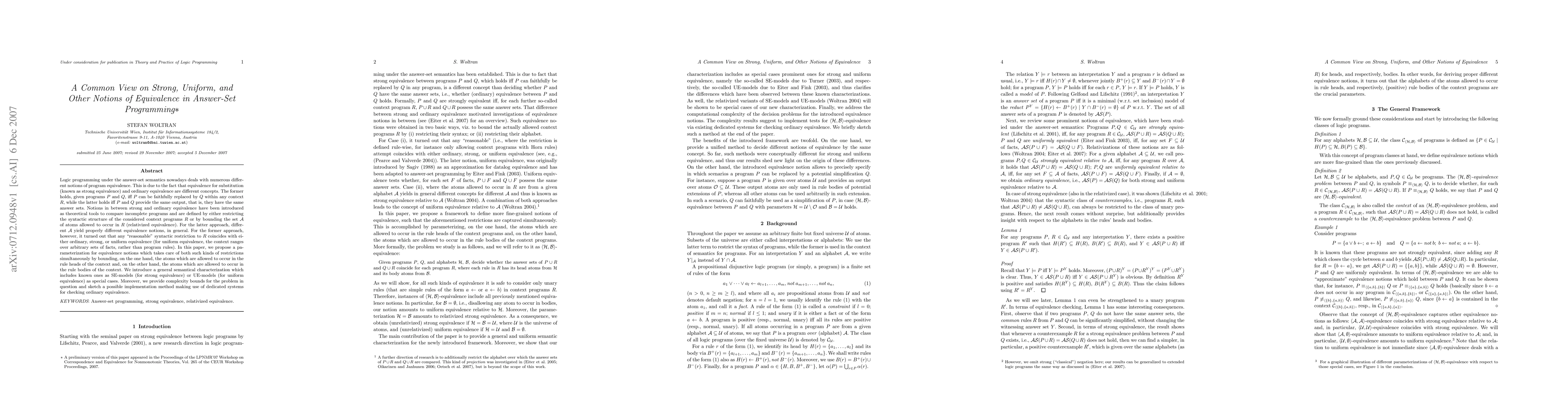 This paper proposes a parameterization for equivalence notions in answer-set programming, addressing both syntactic restrictions and atom bounds in context programs. It introduces a general semantical characterization that encompasses known equivalence types and provides complexity bounds and an implementation sketch.