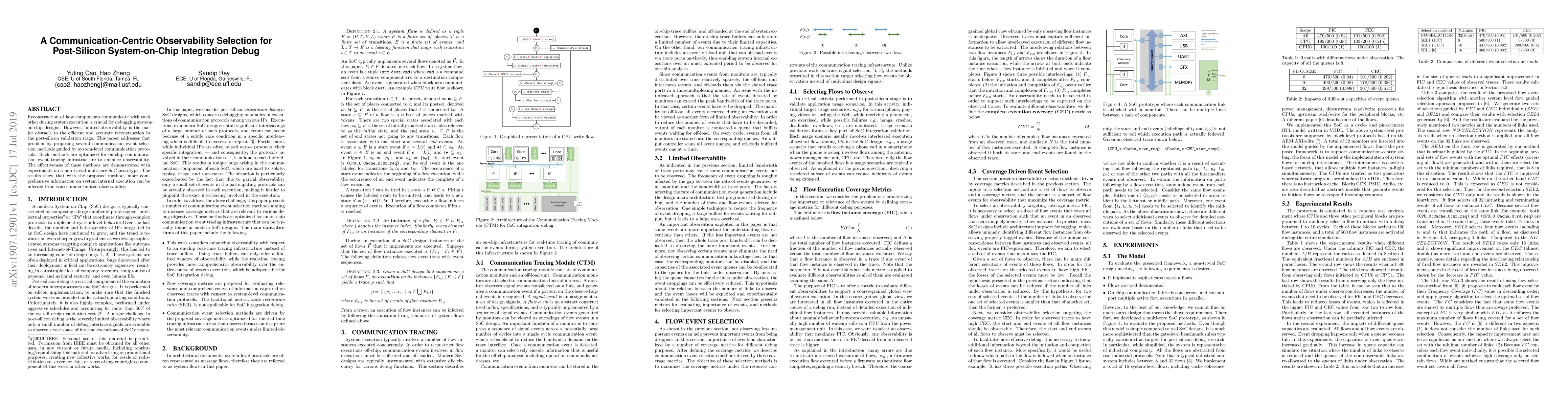 This paper proposes communication event selection methods to enhance observability in post-silicon debugging of system-on-chip designs. The methods are optimized for on-chip tracing infrastructure and demonstrated to provide more comprehensive insights into system execution under limited observability.