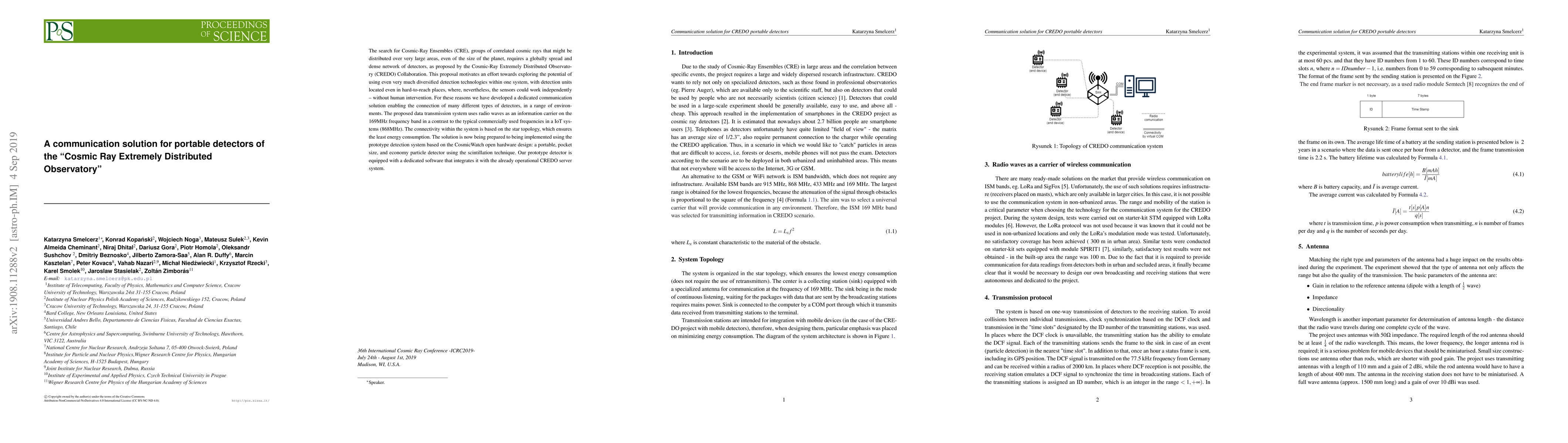 The search for Cosmic-Ray Ensembles (CRE), groups of correlated cosmic rays that might be distributed over very large areas, even of the size of the planet, requires a globally spread and dense network of detectors, as proposed by the Cosmic-Ray Extremely Distributed Observatory (CREDO) Collaboration. This proposal motivates an effort towards exploring the potential of using even very much diversified detection technologies within one system, with detection units located even in hard-to-reach places, where, nevertheless, the sensors could work independently - without human intervention. For these reasons we have developed a dedicated communication solution enabling the connection of many different types of detectors, in a range of environments. The proposed data transmission system uses radio waves as an information carrier on the 169MHz frequency band in a contrast to the typical commercially used frequencies in a IoT systems (868MHz). The connectivity within the system is based on the star topology, which ensures the least energy consumption. The solution is now being prepared to being implemented using the prototype detection system based on the CosmicWatch open hardware design: a portable, pocket size, and economy particle detector using the scintillation technique. Our prototype detector is equipped with a dedicated software that integrates it with the already operational CREDO server system.