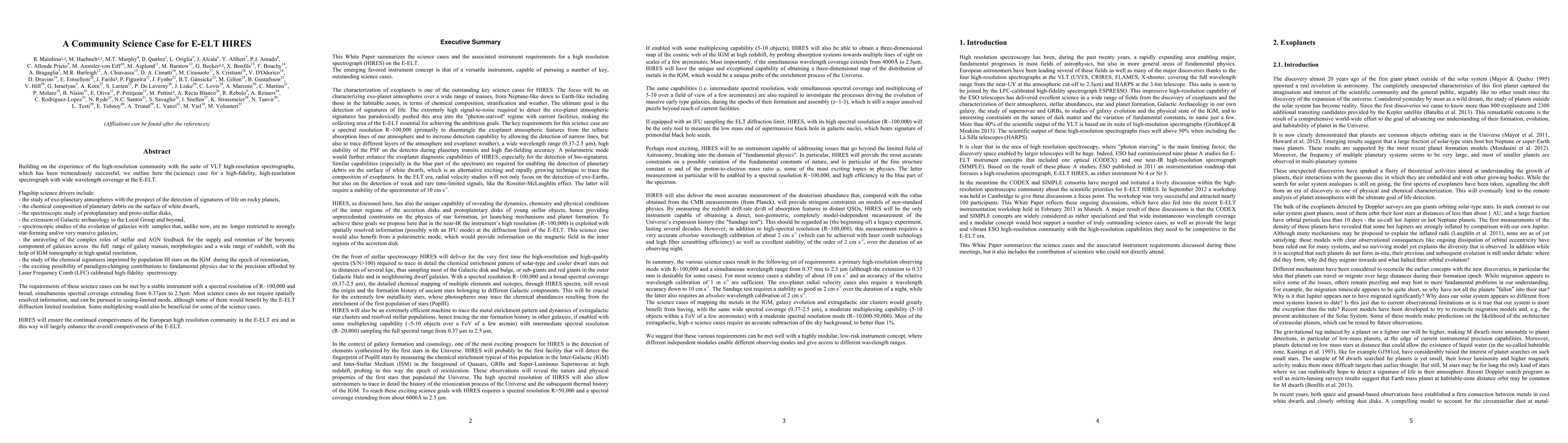 Building on the experience of the high-resolution community with the suite of VLT high-resolution spectrographs, which has been tremendously successful, we outline here the (science) case for a high-fidelity, high-resolution spectrograph with wide wavelength coverage at the E-ELT. Flagship science drivers include: the study of exo-planetary atmospheres with the prospect of the detection of signatures of life on rocky planets; the chemical composition of planetary debris on the surface of white dwarfs; the spectroscopic study of protoplanetary and proto-stellar disks; the extension of Galactic archaeology to the Local Group and beyond; spectroscopic studies of the evolution of galaxies with samples that, unlike now, are no longer restricted to strongly star forming and/or very massive galaxies; the unraveling of the complex roles of stellar and AGN feedback; the study of the chemical signatures imprinted by population III stars on the IGM during the epoch of reionization; the exciting possibility of paradigm-changing contributions to fundamental physics. The requirements of these science cases can be met by a stable instrument with a spectral resolution of R~100,000 and broad, simultaneous spectral coverage extending from 370nm to 2500nm. Most science cases do not require spatially resolved information, and can be pursued in seeing-limited mode, although some of them would benefit by the E-ELT diffraction limited resolution. Some multiplexing would also be beneficial for some of the science cases. (Abridged)
