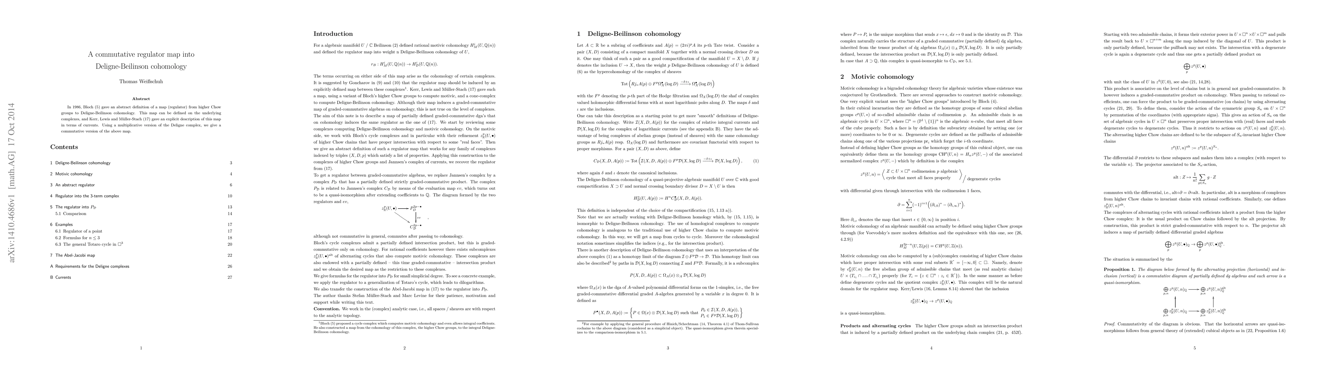 This paper presents a commutative version of Spencer Bloch's regulator map from higher Chow groups to Deligne-Beilinson cohomology, building on Kerr, Lewis, and Müller-Stach's explicit description using currents and employing a multiplicative Deligne complex.