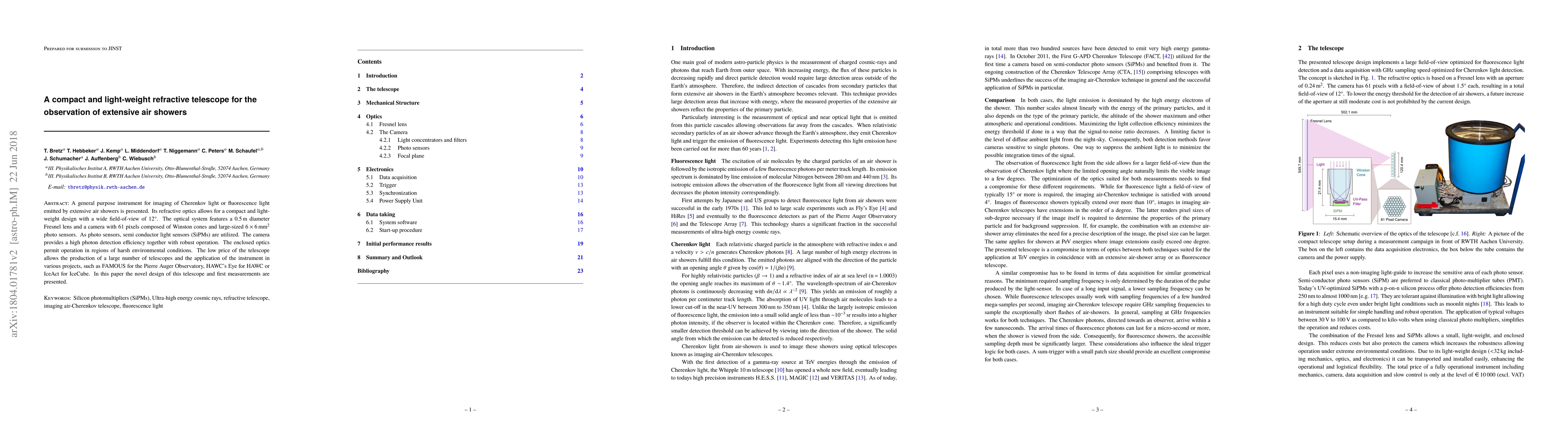 The paper introduces a compact, lightweight refractive telescope for observing Cherenkov and fluorescence light from extensive air showers. It features a 0.5m Fresnel lens, a 61-pixel camera with Winston cones and SiPM sensors, providing high photon detection efficiency and robustness in harsh conditions. This design allows for cost-effective production, enabling its use in various projects like FAMOUS, HAWC's Eye, and IceAct.