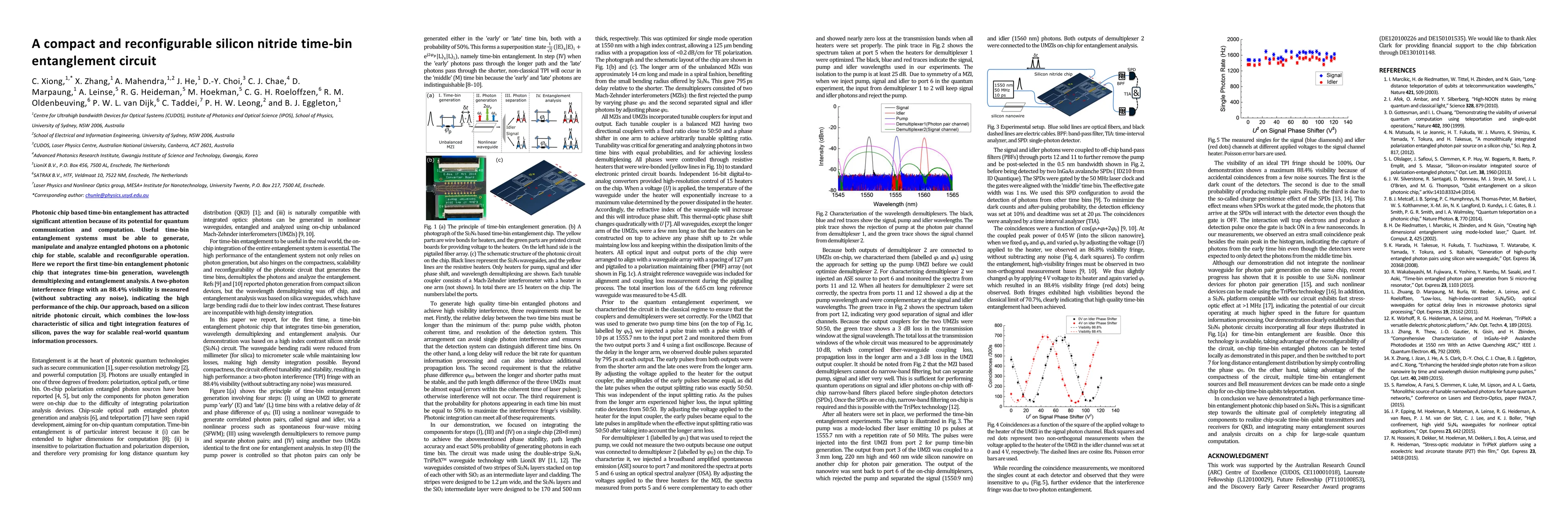 This paper presents a silicon nitride photonic chip for generating, manipulating, and analyzing time-bin entangled photons, achieving an 88.4% visibility interference fringe. The compact, reconfigurable design supports scalable quantum communication and computation.