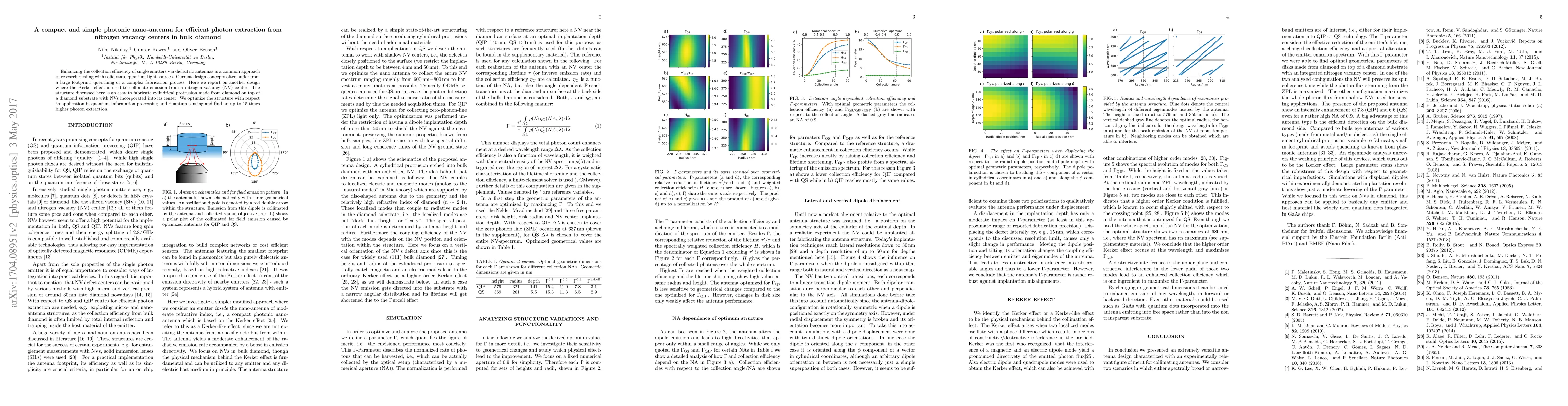 This paper presents a compact photonic nano-antenna based on the Kerker effect to enhance photon extraction from nitrogen vacancy centers in diamond, achieving up to 15 times higher efficiency compared to current designs, with a simple fabrication process.
