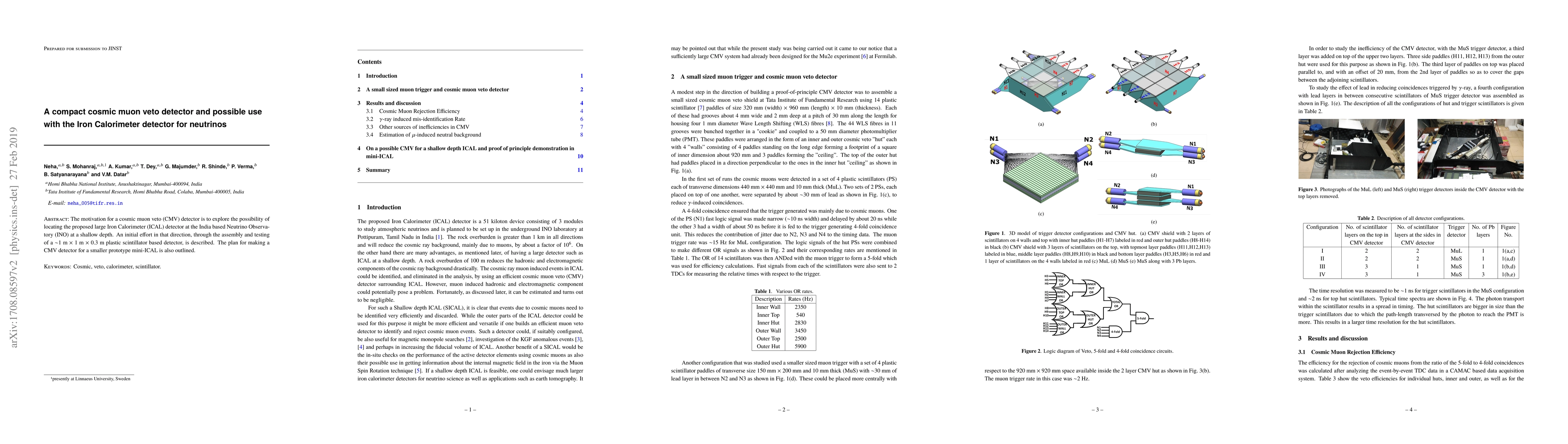 The motivation for a cosmic muon veto (CMV) detector is to explore the possibility of locating the proposed large Iron Calorimeter (ICAL) detector at the India based Neutrino Observatory (INO) at a shallow depth. An initial effort in that direction, through the assembly and testing of a $\sim$ 1 m $\times$ 1 m $\times$ 0.3 m plastic scintillator based detector, is described. The plan for making a CMV detector for a smaller prototype mini-ICAL is also outlined.